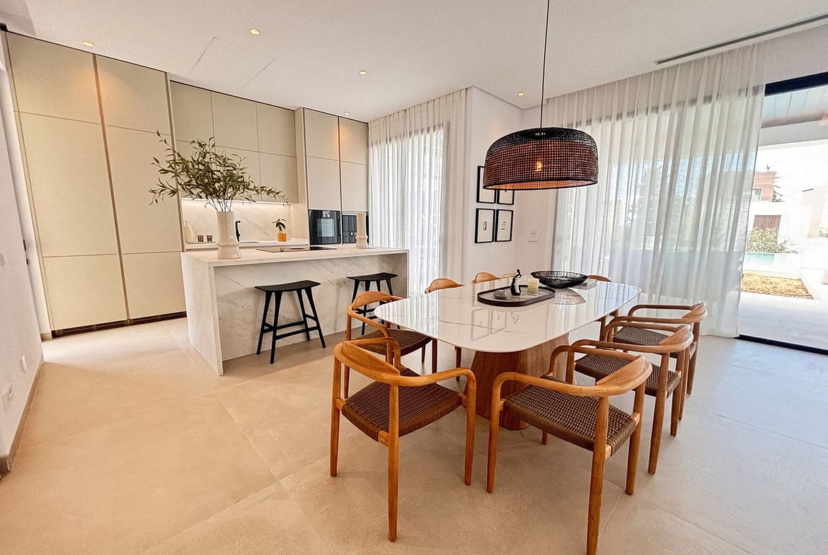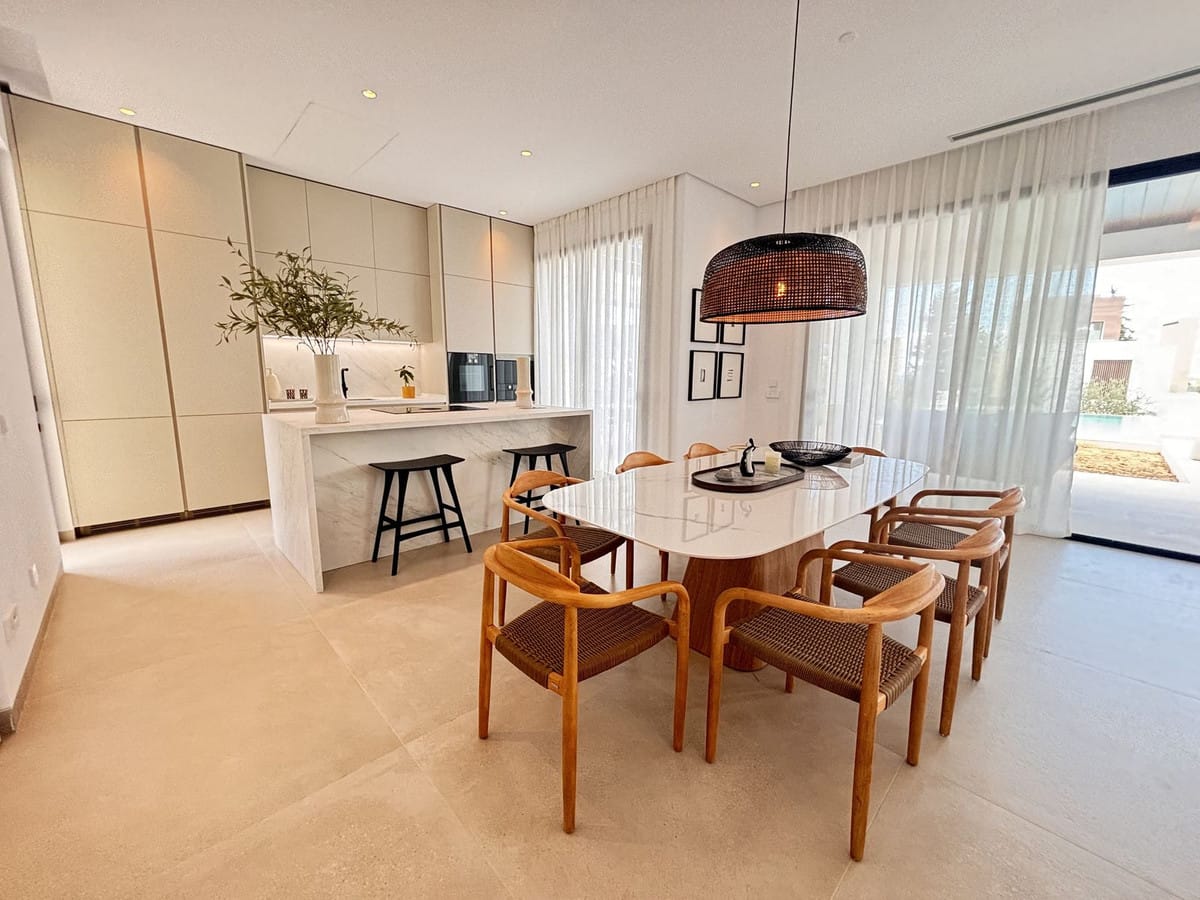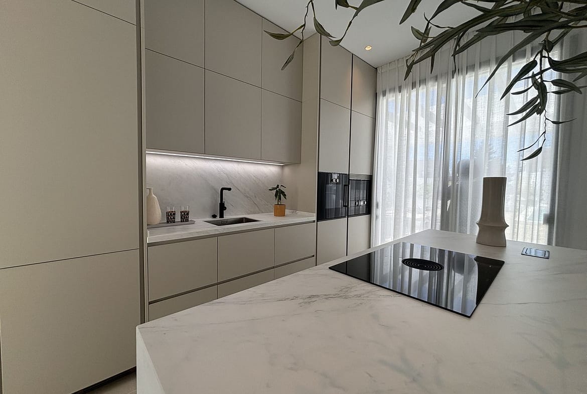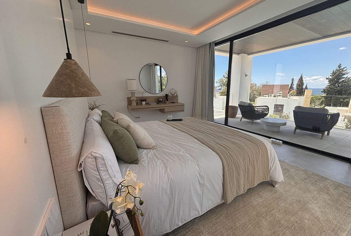 With a plot of 1000m2, a total living area of 730m2, large terrace of 225m2 and includes 5 bedrooms and 5 bathrooms, a spacious living room, an open plan kitchen equipped with the highest quality furniture and appliances, a private lift connecting each level of the property, cinema, sauna and hammam, under floor heating, a rooftop solarium with beautiful views towards the sea and private garage for 2 cars + 2 parking spaces.