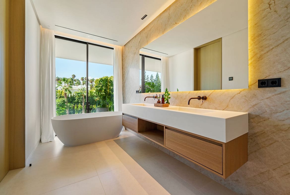 Nestled in the prestigious Lomas de Marbella Club on Marbella’s Golden Mile, this architectural masterpiece redefines contemporary Mediterranean living. Spanning 1,460 m² on a 1,010 m² plot, the seven-bedroom residence offers an exceptional fusion of elegance, privacy, and natural serenity. Wood and stone dominate its design, infusing every space with organic warmth and creating a seamless dialogue between interior comfort and the surrounding landscape.