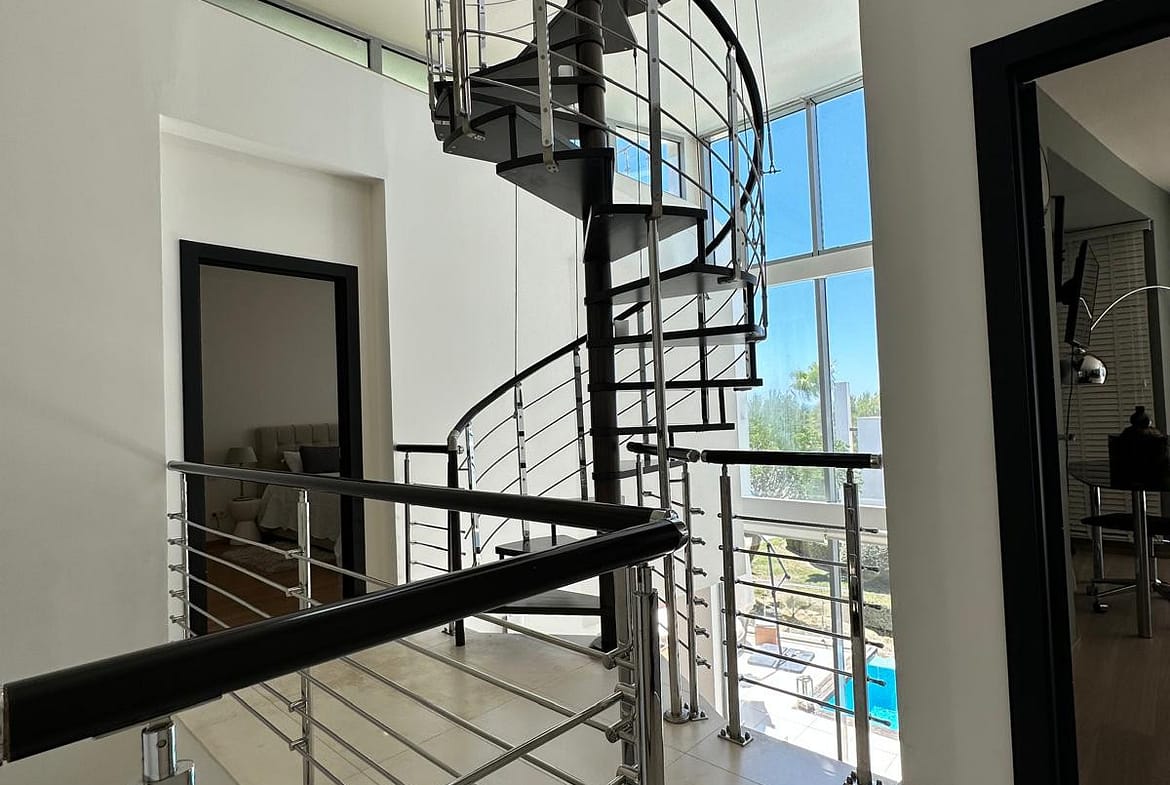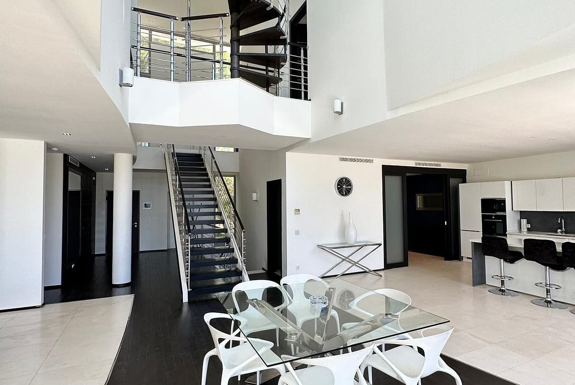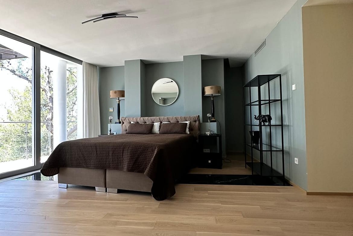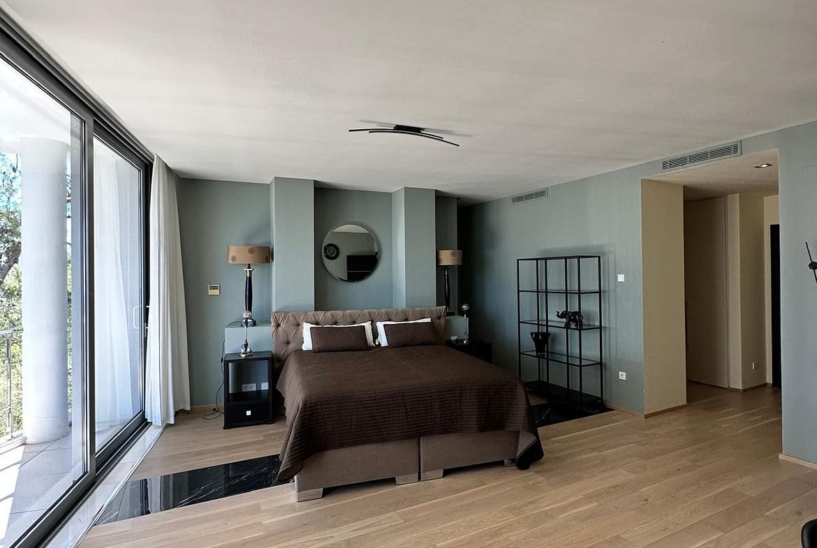 This luxurious abode comes fully furnished and includes a fully fitted, open-plan kitchen equipped with modern appliances. Quality and comfort are evident throughout with air conditioning, underfloor heating in the bathrooms, and double glazing. The living room features a sophisticated fireplace and parquet floors, creating a warm and inviting atmosphere. Additionally, a roof terrace offers partial sea and stunning garden views, while glass doors and porcelain floors lend a touch of modernity.