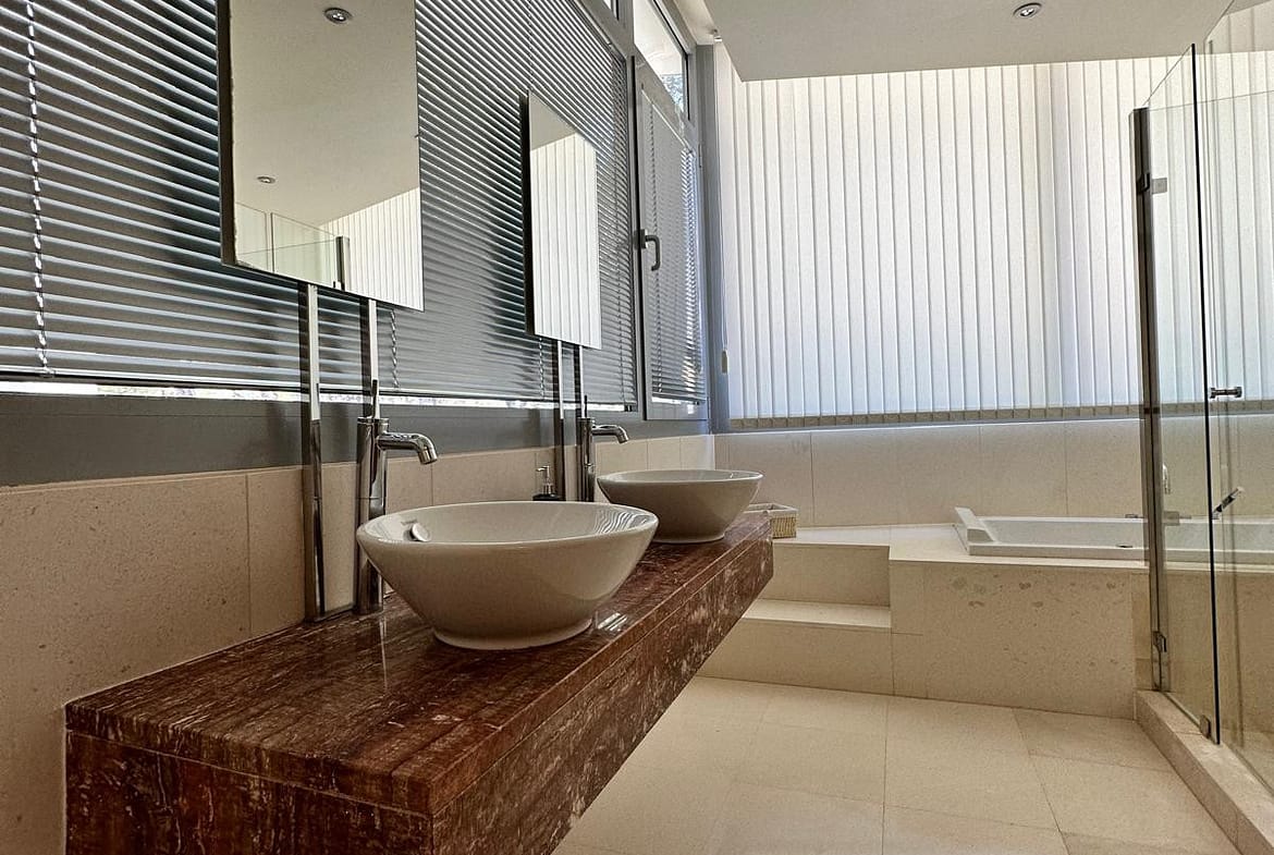 Situated in the prestigious Meisho Hills of Marbella Golden Mile, Marbella, Malaga, this luxury semi-detached house epitomises elegant living. Boasting five spacious bedrooms, each with its own en-suite bathroom, this property offers an unparalleled level of comfort and privacy. With a built area of 800m², every corner of the house is meticulously designed to reflect a blend of opulence and practicality. The property includes a private garage and a guest toilet for added convenience.
