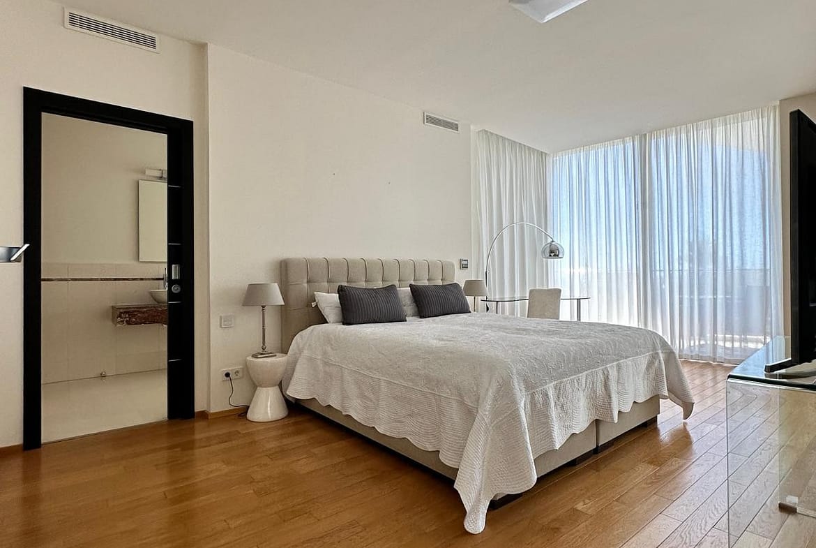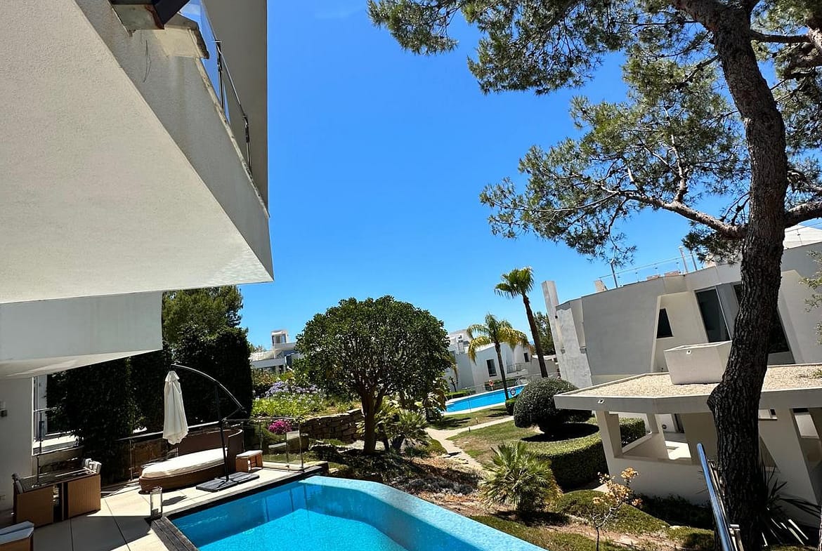The residence features both a private and heated indoor pool, as well as communal garden access, making it perfect for those who appreciate both solitude and community. Amenities near the property include proximity to the beach, town, and local schools, making it an ideal setting for both leisure and family life. Security is paramount with a 24-hour security service, surveillance cameras, and a secure gated community entrance, ensuring peace of mind for its residents.