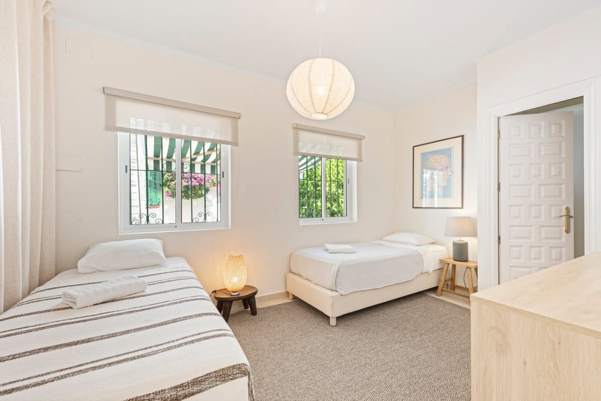 The villa comprises a total of 5 bedrooms and 3 bathrooms. Three of the bedrooms are located in the main house, where one of the bathrooms is also situated. Additionally, the property features two independent annexes for guests, each with a bedroom and a bathroom, and one of them includes a practical kitchen, providing extra privacy and comfort.