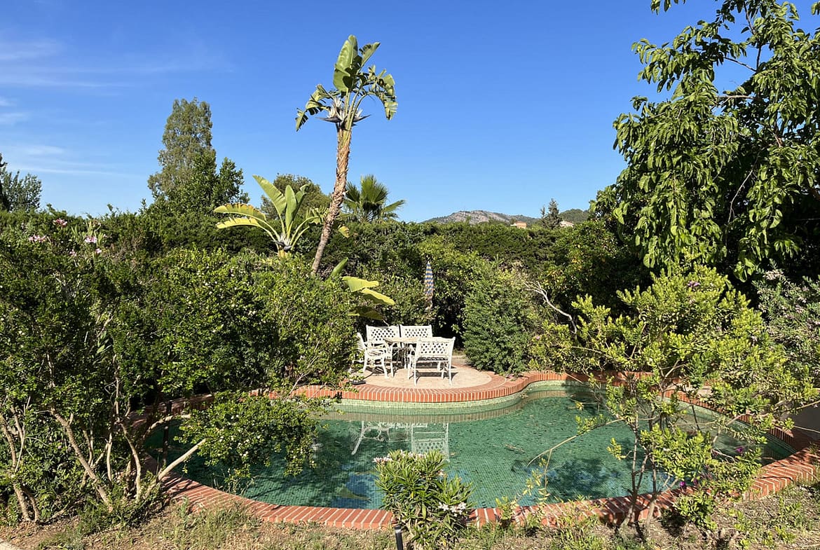 The garden, characterised by various paths where you can stroll, has a gem that is hard to find: a beautiful artificial pond, a corner where you can relax in the shade of the trees and surrounded by nature.