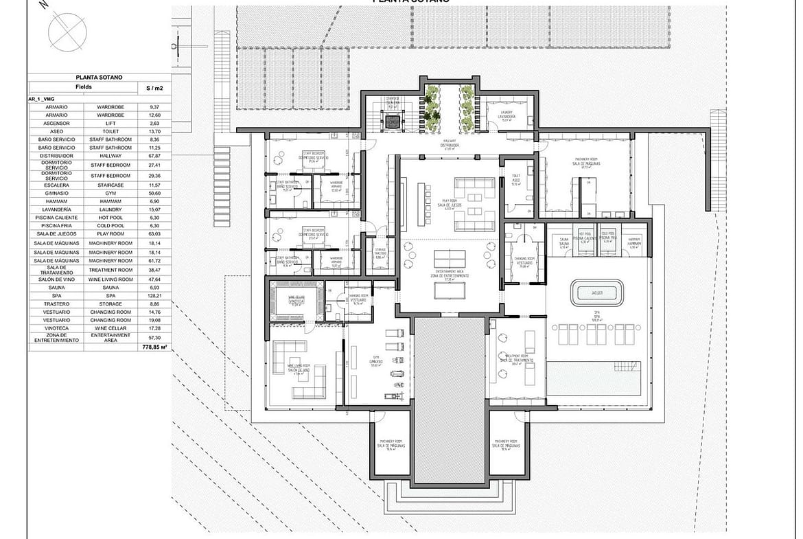 The villa features six spacious bedrooms, each with its own en-suite bathroom, as well as a guest toilet, ensuring comfortable accommodation for family and guests. The interiors are meticulously appointed with high-end finishes, including porcelain flooring, fitted wardrobes, and glass doors, while the fully equipped kitchen and separate utility kitchen provide versatile culinary spaces. The living and dining areas open onto both covered and uncovered terraces, seamlessly integrating indoor and outdoor spaces. The property is fully accessible via elevator and is equipped with home automation technology, underfloor heating throughout, individual air conditioning units, and aerothermal systems for year-round comfort.