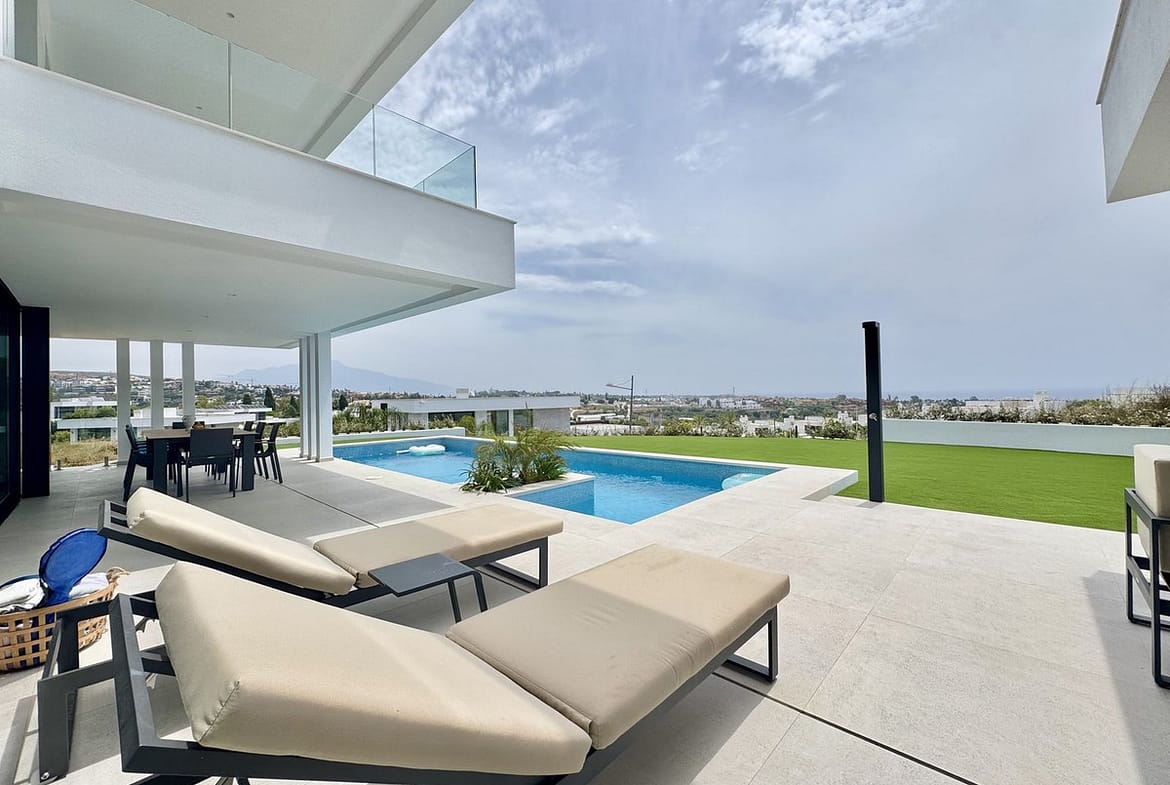 Modern newly built villa with 6 bedrooms and 6 en-suite bathrooms, spread over 3 floors and located in an exclusive area, designed for those seeking luxury, comfort, and style. With 460sqm of built area and a southeast orientation, this property stands out for its impressive contemporary architecture, double-height ceilings, and large windows that flood every space with natural light, creating a perfect connection between indoors and outdoors.