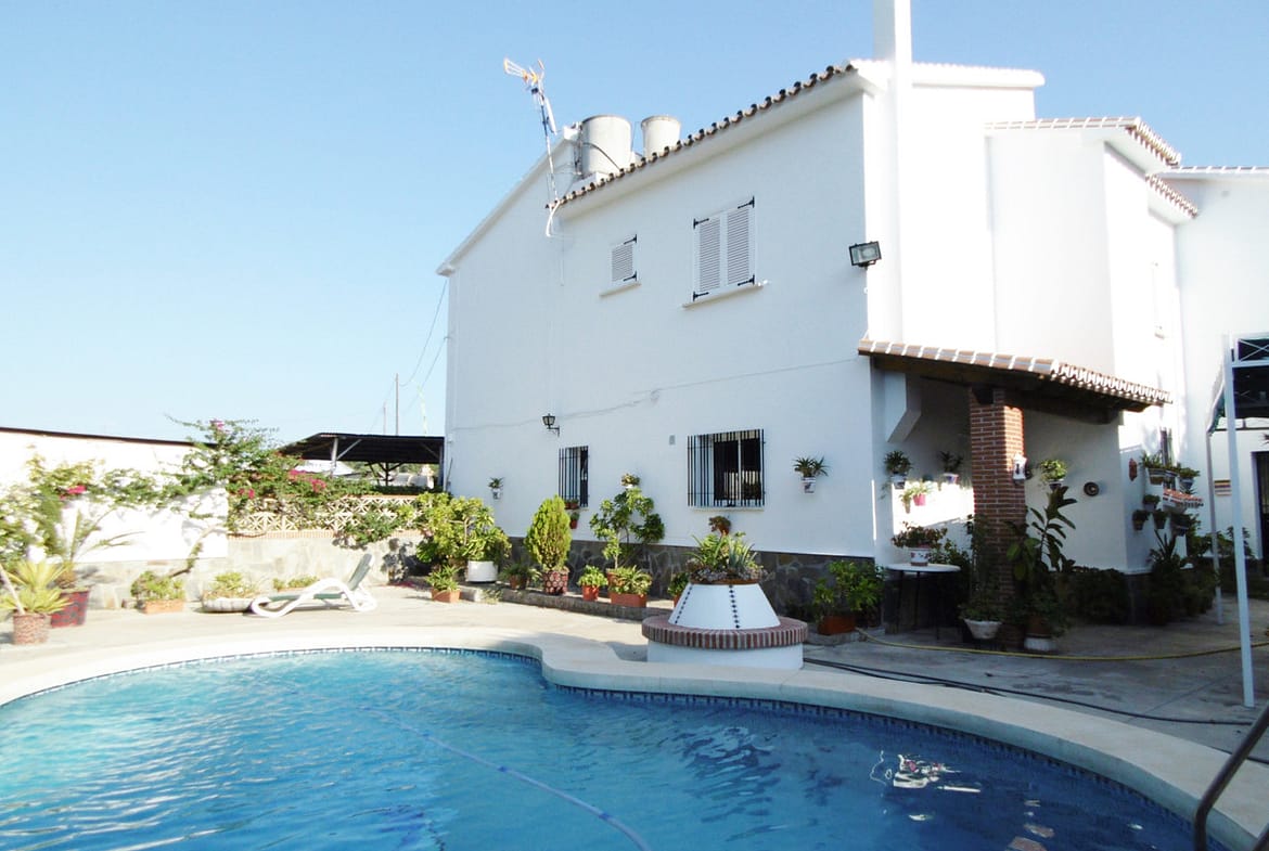 CLOSE TO LA TROCHA COMERCIAL CENTER! Andalousian style villa in town with pool, tropical gardens and fruit trees. Has its own well.