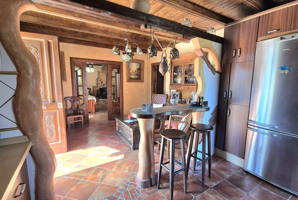 Outside, there are additional warehouses that can be converted into accommodation or stables, as well as covered storage areas. It also has a plot of land with several fruit trees.