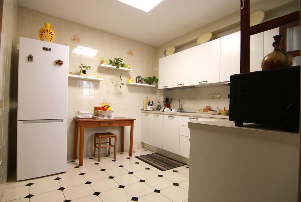 On the ground floor, there are two bedrooms and a large renovated kitchen with a window overlooking the patio. The bathroom on this floor, although not renovated, is in excellent condition, perfect for those who appreciate classic or vintage style.