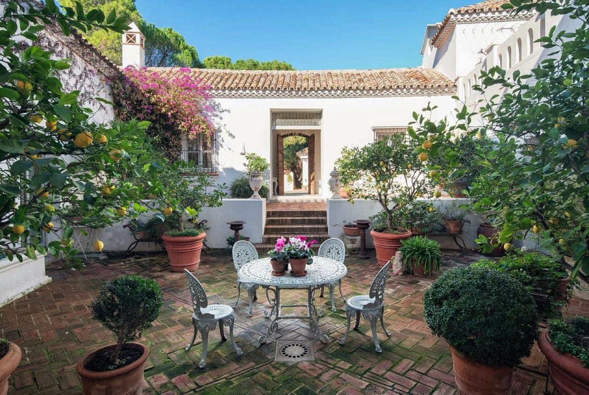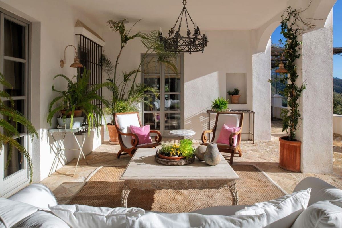 A timeless and classic style property with country-inspired décor. The natural surroundings and breathtaking views are part of the charm at this fabulous six-bedroom home. Featuring materials that have been meticulously gathered from various regions of Spain, paying attention to every last detail. On the ground level, a double height entrance hall with fireplace, living room with fireplace, access to the terrace, dining room with fireplace, kitchen and dining area and laundry room. Outdoors, the terraces and porches offer access to the garden and swimming pool. Two guest bedroom suites; cinema room and a guest bathroom complete this level. On the upper level, the primary suite with fireplace, two dressing areas and study; a further two bedroom suites, one with a spacious terrace. There is a separate one bedroom self-contained apartment with its own kitchen, sitting room and terrace. Additional features include a small fitness room; double garage and car port, double glazing, antique terracotta tiling, solid oak wooden flooring in bedrooms and limestone flooring in bathrooms.