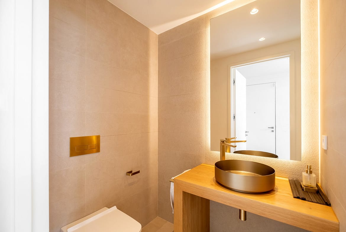 The basement level, finished to a high standard and benefiting from natural light, includes two additional bedrooms with bathrooms, a comfortable lounge area, and a fully equipped laundry room. This level also features a private spa area with sauna and jacuzzi, perfect for relaxation.