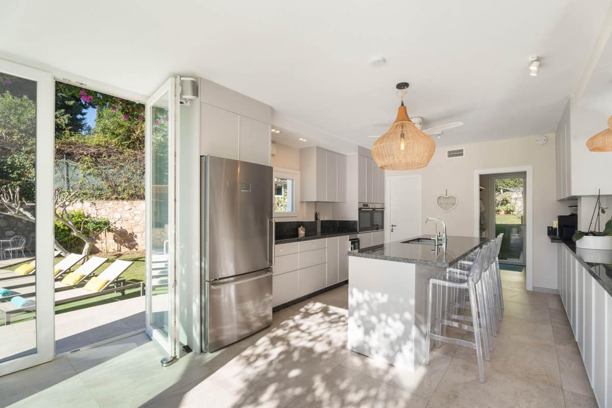 The main living space opens directly to the garden and pool, creating a seamless indoor–outdoor lifestyle. The fully fitted contemporary kitchen includes a separate pantry/scullery area, providing excellent practicality for everyday use as well as relaxed entertaining.