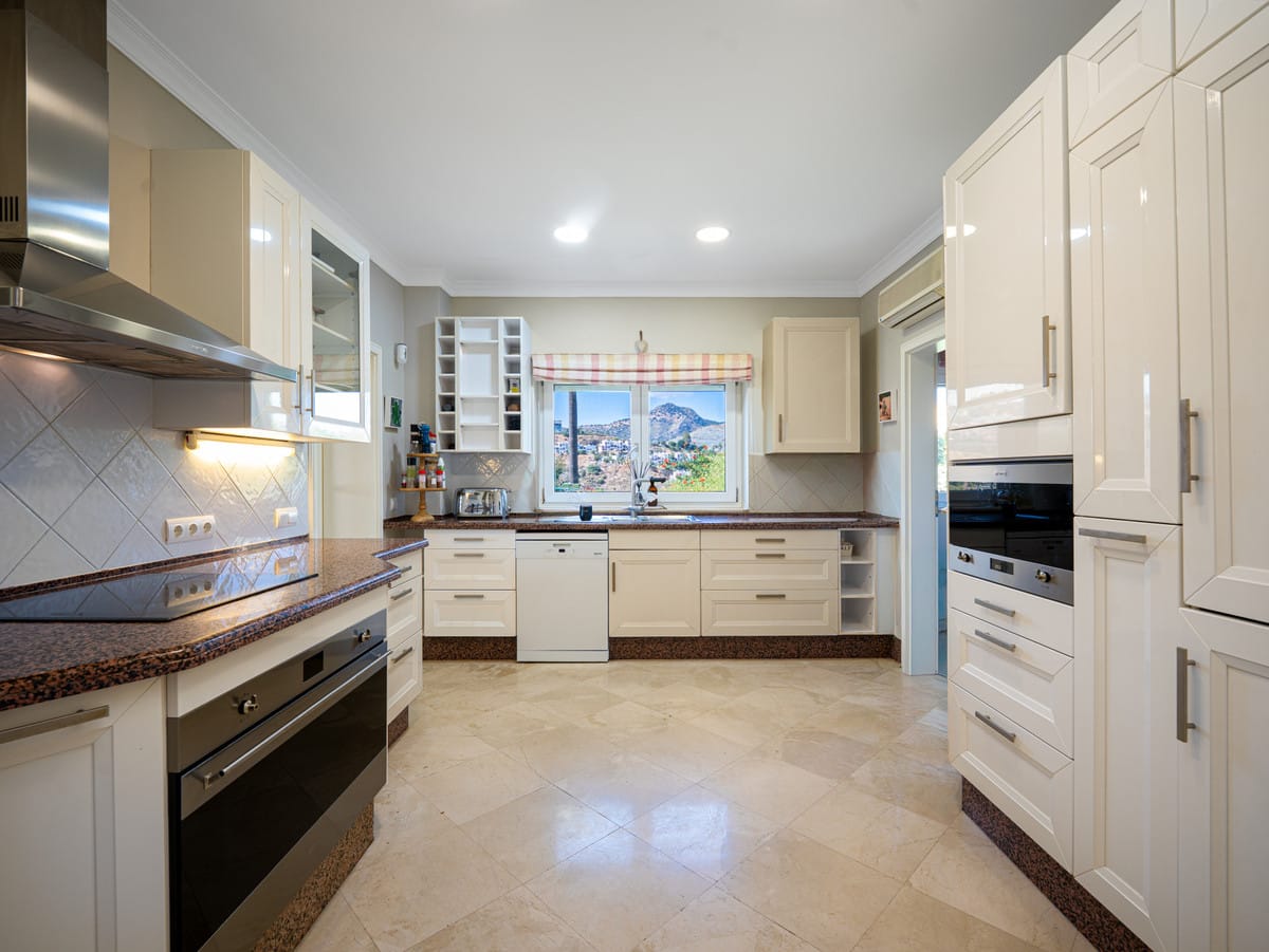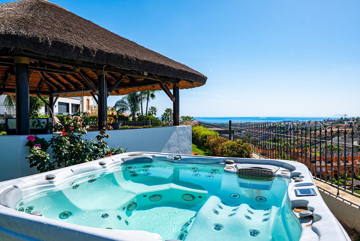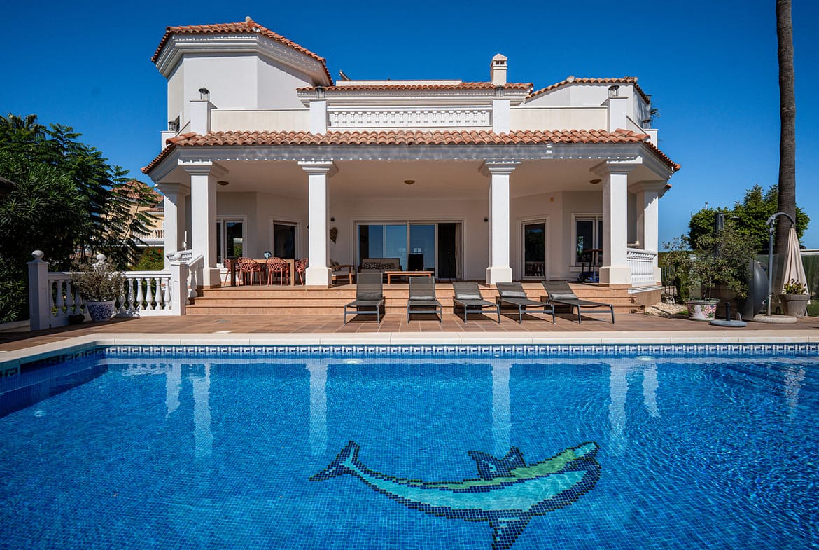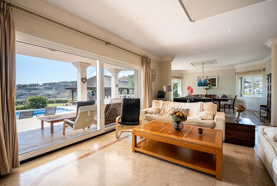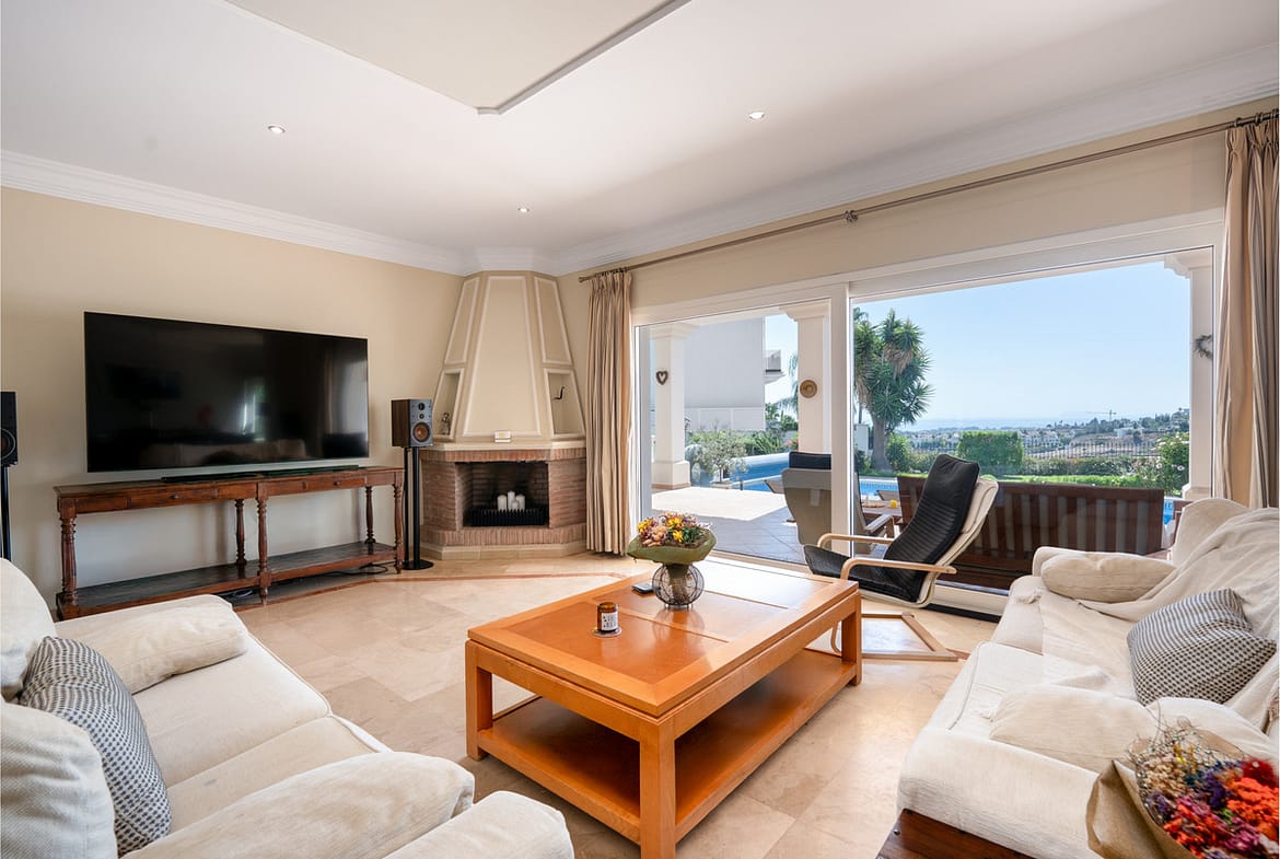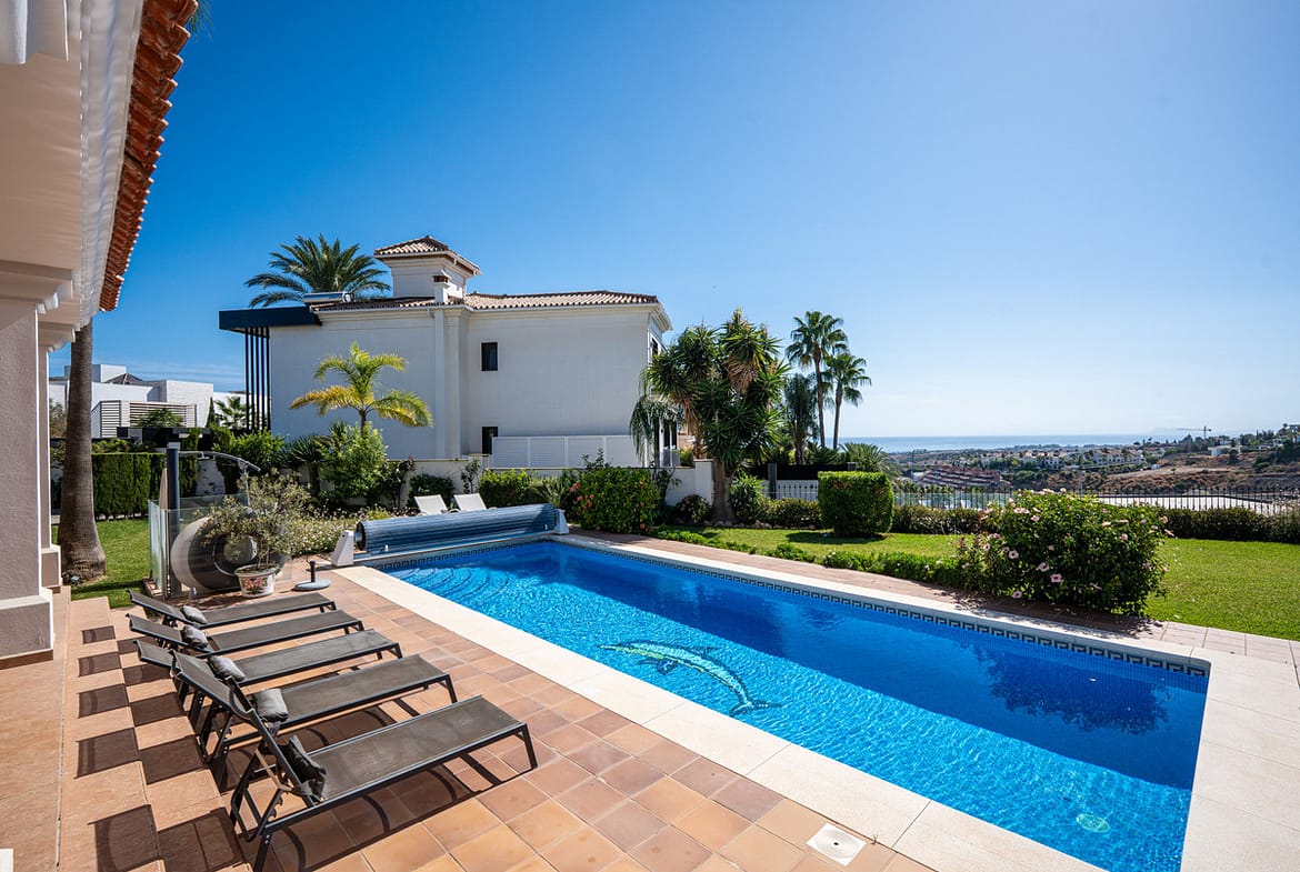 This is a luxury villa for sale in Atalaya Alqueria offering privacy space and security. This detached family home sits behind gated access and includes a private garage for two cars plus additional driveway parking. The villa offers five bedrooms all with en suite bathrooms multiple living areas and generous indoor and outdoor space designed for year round living.