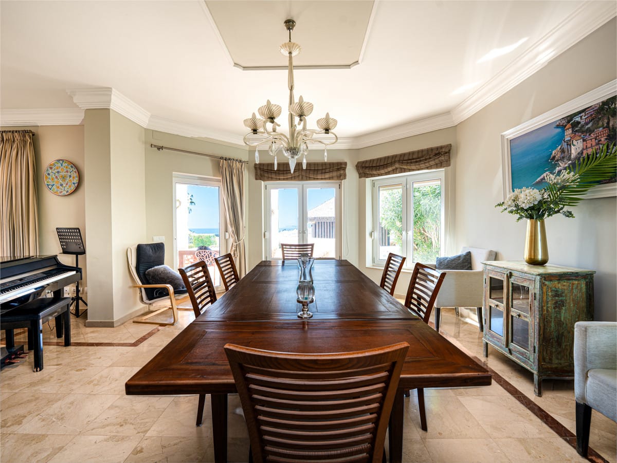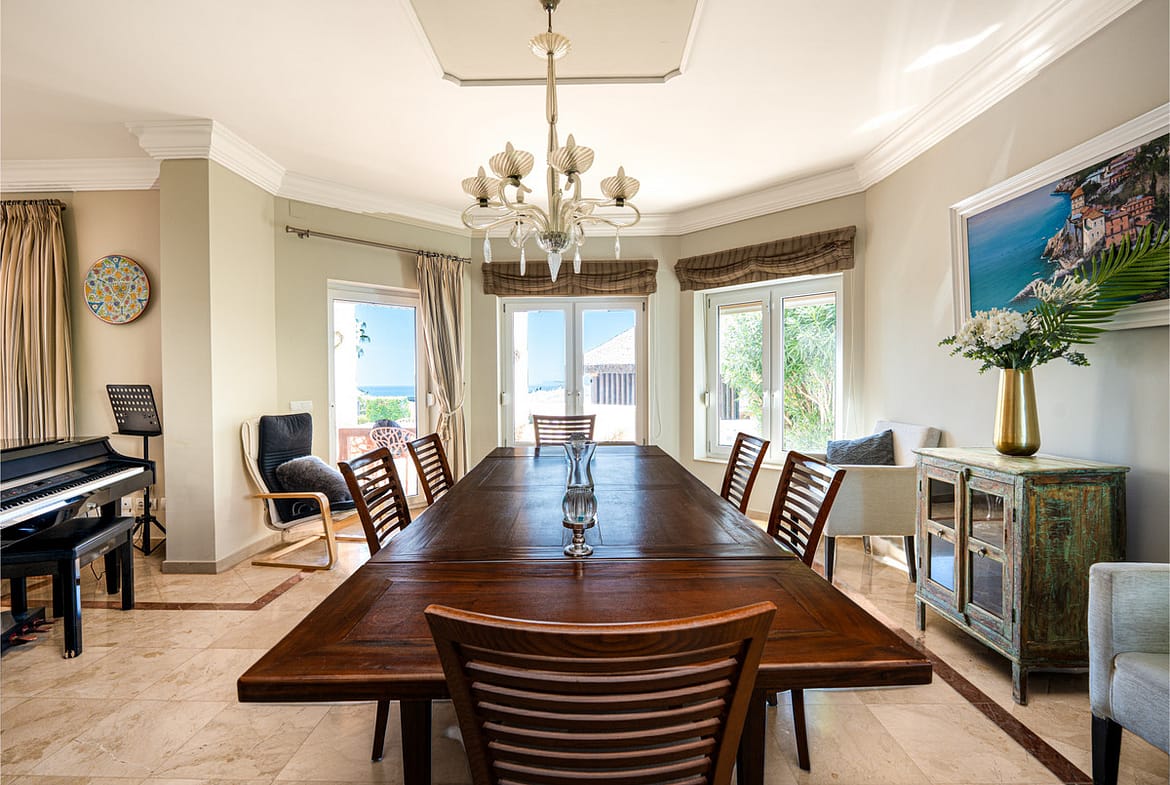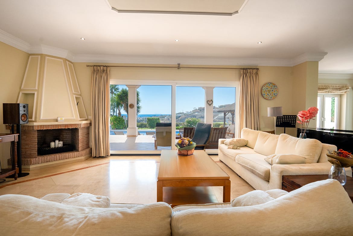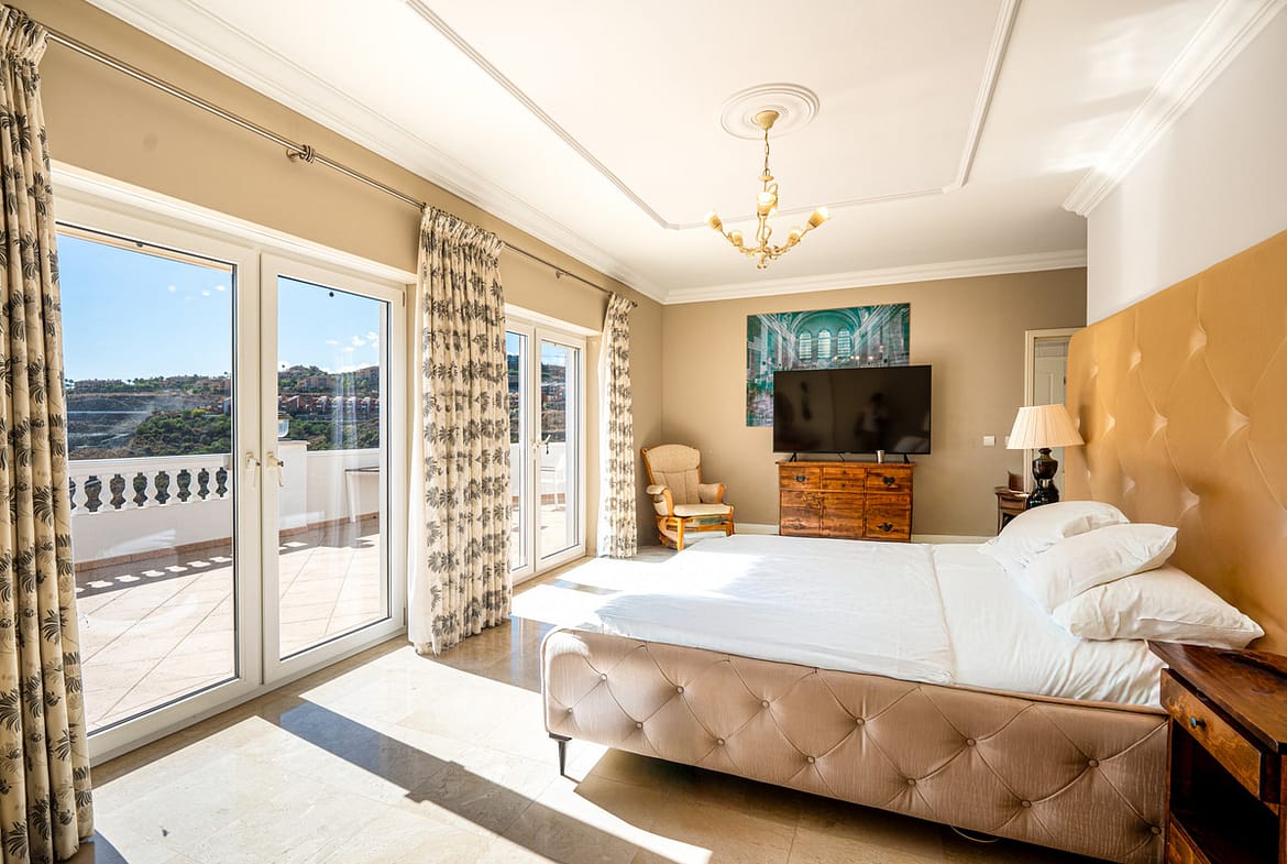The upper floor includes a spacious master suite with a private terrace and open views towards the coast and Gibraltar. Additional guest suites a sauna family room and flexible spaces on the lower level make this home ideal for full time living or a luxury holiday residence. This is a strong option for buyers seeking a high quality villa in a prime Atalaya Alqueria location.