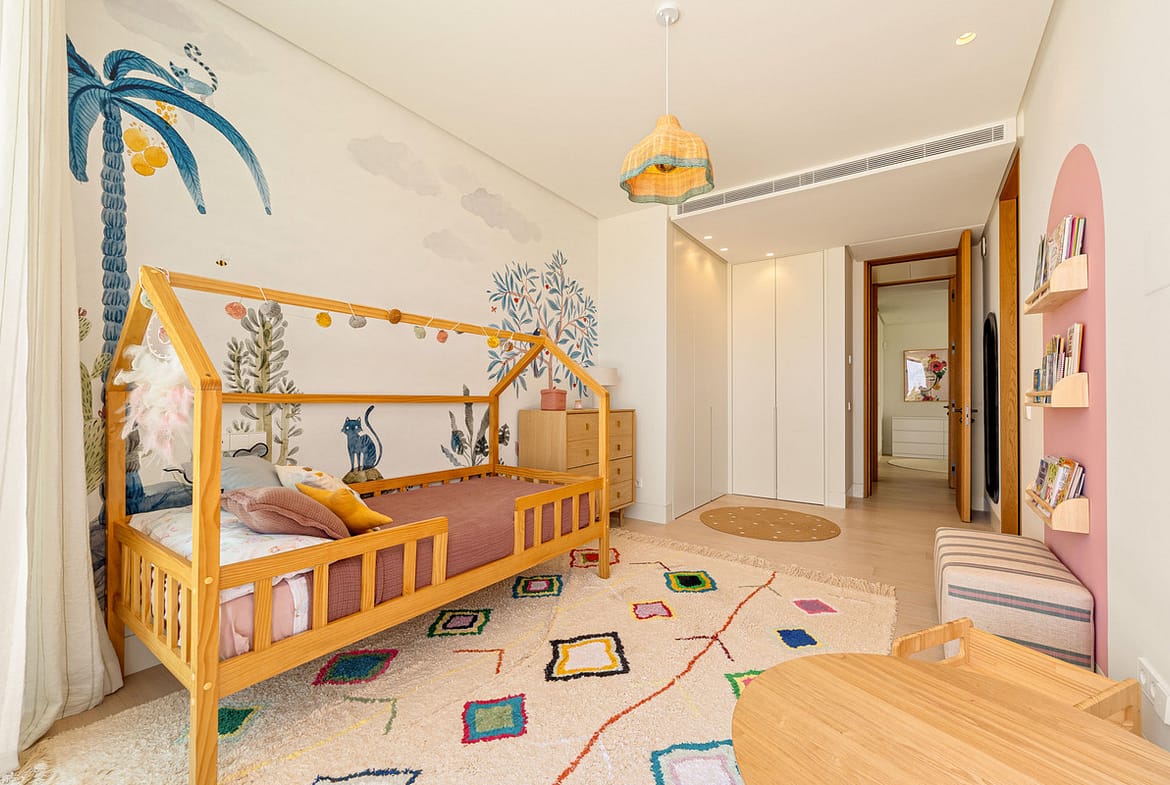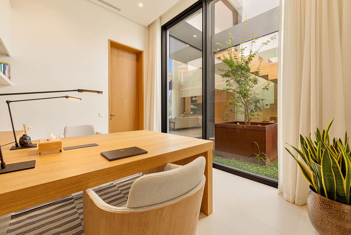 The main floor offers seamless indoor-outdoor living with an open-plan lounge and dining area that flows to expansive terraces and the pool. Floor-to-ceiling glass doors flood the home with light, while the designer kitchen, double-height ceilings, and thoughtful layout make it ideal for family life and entertaining. The villa includes six spacious bedrooms, with a standout primary suite featuring a walk-in wardrobe and luxurious en-suite bathroom. Additional highlights include a home office, a private entertainment level with a gym, media area, and leisure spaces. Outdoors, residents enjoy a private pool, manicured lawns, and both shaded and sunlit terraces. Secure entry, ample parking, and integrated climate and lighting systems complete this turnkey residence in one of Marbella’s most desirable neighborhoods.