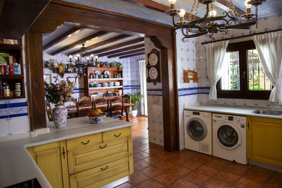 Villa with 6 bedrooms with 4 bathrooms and toilet. The property consists of 575 m2 built, as well as charming outdoor spaces, such as porches, terraces, patios totalling 144 square metres, and gardens throughout the property to enjoy different sensations, environments and views. The property is situated on a plot of 10.000 m2, where there are, apart from the house, wide spaces to enjoy different activities: the swimming pool area of 12 metres long, surrounded by a large bermudagrass lawn, to swim, sunbathe and relax or practice some sport on the high quality tennis court with night lighting . A building of 85 m2 independent of the house, formerly used as stables, is now converted into an office and workshop equipped with all the machinery and tools necessary for the maintenance of the estate. This building, if desired, could easily be converted into a guest or staff house.