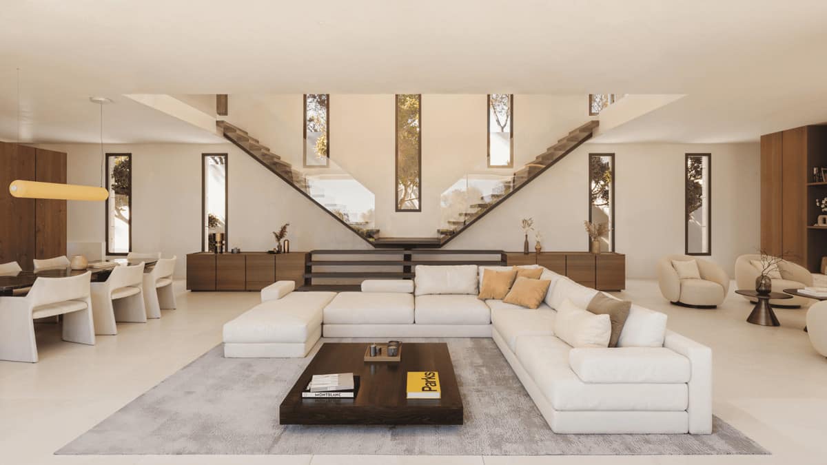 The main living area will flow effortlessly onto beautifully landscaped terraces and a private swimming pool, creating the perfect environment for both relaxation and entertaining. Large floor-to-ceiling windows and spacious terraces ensure that every level of the home enjoys the stunning views across the golf course and surrounding landscape.