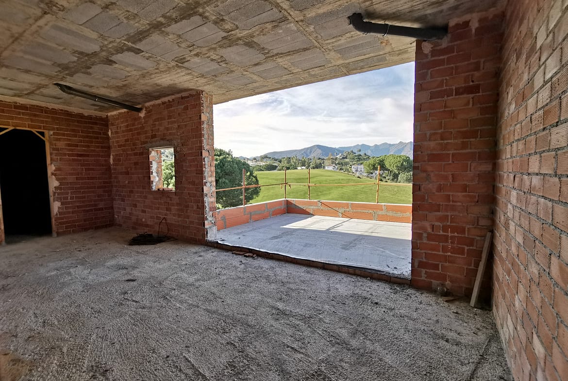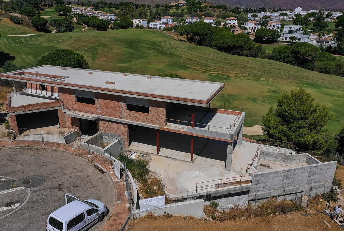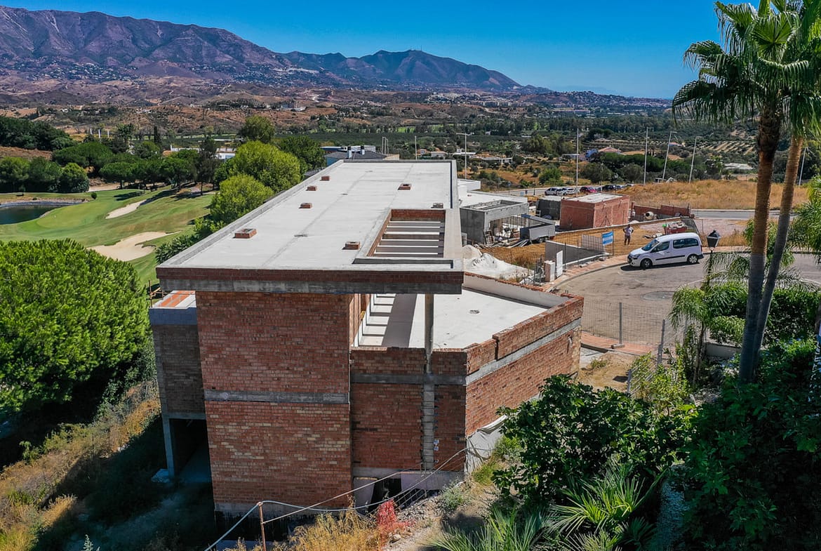 INVESTMENT OPPORTUNITY. One off chance to buy at rock-bottom price this large golf front villa overlooking the beautiful Asia course, one of the 3 superb golf courses in La Cala Resort. Under construction as the the villa is with an estimate cost to complete the construction of about 600.000€. The villa will welcome you with a grand entrance hall with double height ceiling and floor to ceiling windows overlooking the golf course, very large living and dining room with open plan kitchen, wrap around glass windows opening out onto a sunny terrace with infinity pool above the golf course. Two en-suite bedrooms with bathrooms are also on this floor. The first floor is home to the enormous master suite with very large bedroom, bathroom, dressing room and private terrace, and a further en-suite bedroom with terrace. The lower ground floor accommodates a huge space that can be designed to the buyer’s desire – gym, spa, indoor pool, further bedrooms. Garages for up to 6 cars. Lovely plot with garden boosting superb views over the golf course, don't miss out!