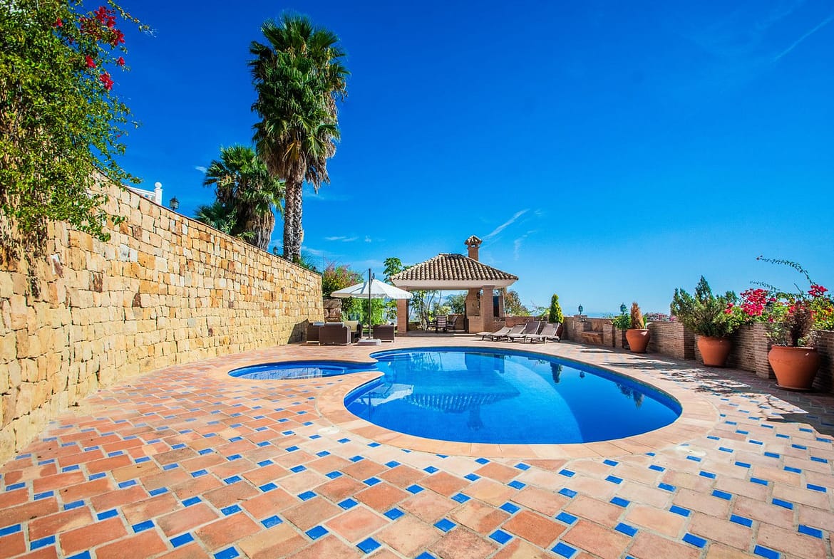 Outside, a large pool accompanied by a barbecue area invites you to enjoy the sunny climate and spectacular views. This property is ideal both as a luxurious family residence and an investment opportunity for future development.