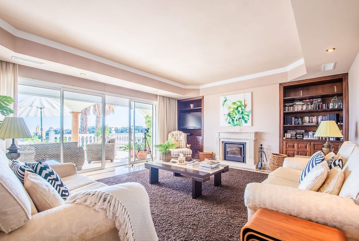 This stunning villa, accompanied by three adjoining buildable plots, presents an exceptional investment opportunity. Boasting six bedrooms and five bathrooms, this property offers abundant space and comfort. Revel in panoramic views of the sea and mountains from every corner of the home.