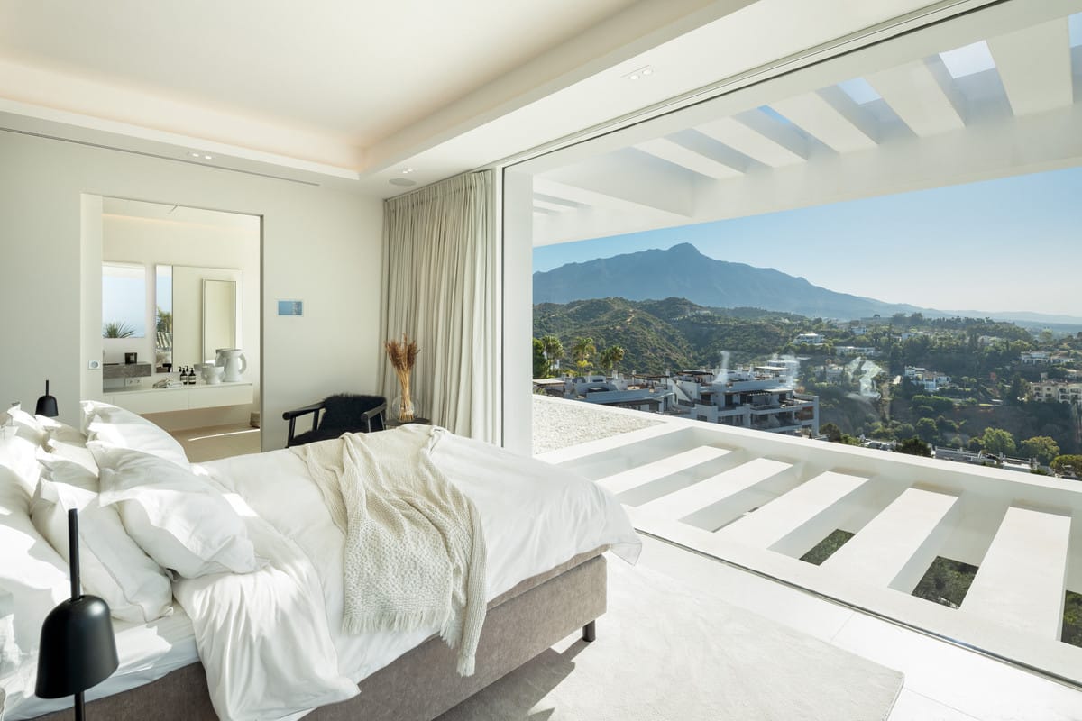 Villa Mika is a contemporary villa for sale in La Quinta. With a south-facing orientation, the villa captures panoramic views that sweep from the majestic La Concha Mountain across the Mediterranean to Gibraltar, ensuring that every sunrise and sunset instills a tranquil sense.