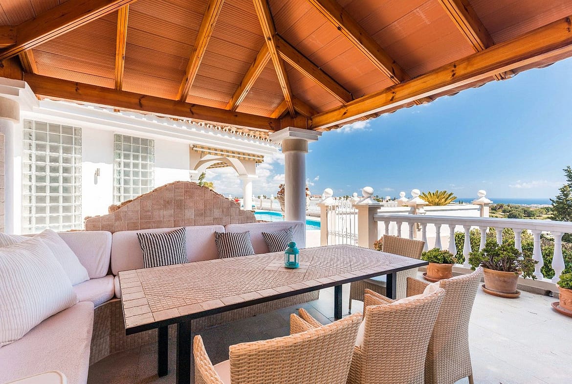 Spacious and luxuriously fully furnished villa with 12 beds. There is sun from morning to evening New large tiled outdoor area -terrace – with many sitting groups – Sunbeds and a 15 meter pool on the terrace. BBQ with Weber grill – fireplace – refrigerator – washing machine – Down Lights – music Absolutely perfect for atmospheric cool evenings with good food – wine and soft lighting from the terrace and pool. Large living room with comfortable sofa, perfect for relaxing, flat screen TV, music, fireplace, dining room. Kitchen fully equipped with coffee machine, kettle, toaster, iron, microwave, dishwasher, stove, 2 fridges, freezer. Very large selection of service – glass for 12 people. There are 5 Delicate bedrooms with en-suite bathroom, bathtub/shower, all with hair dryer 1 guest toilet