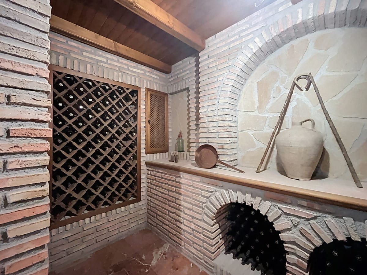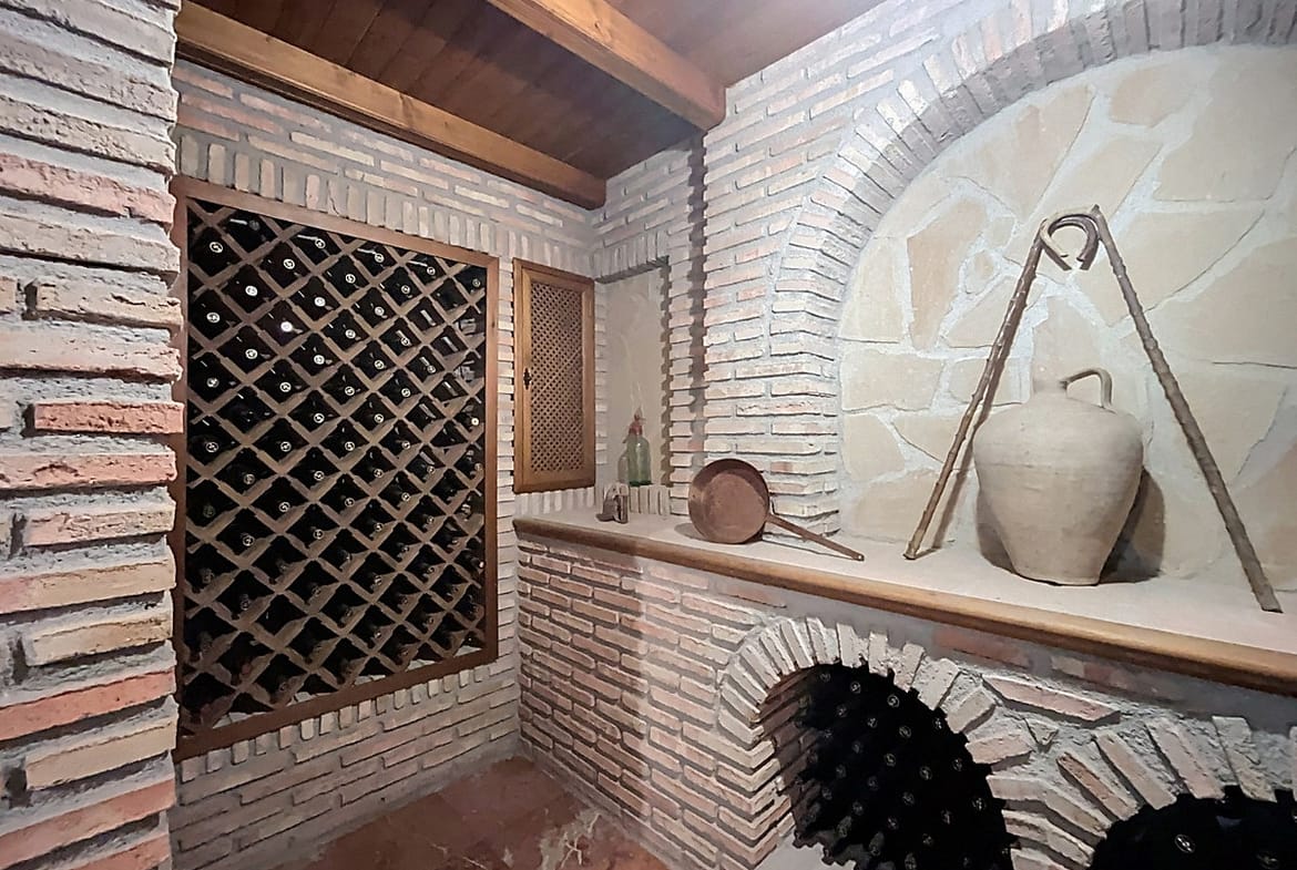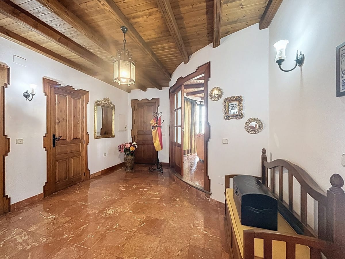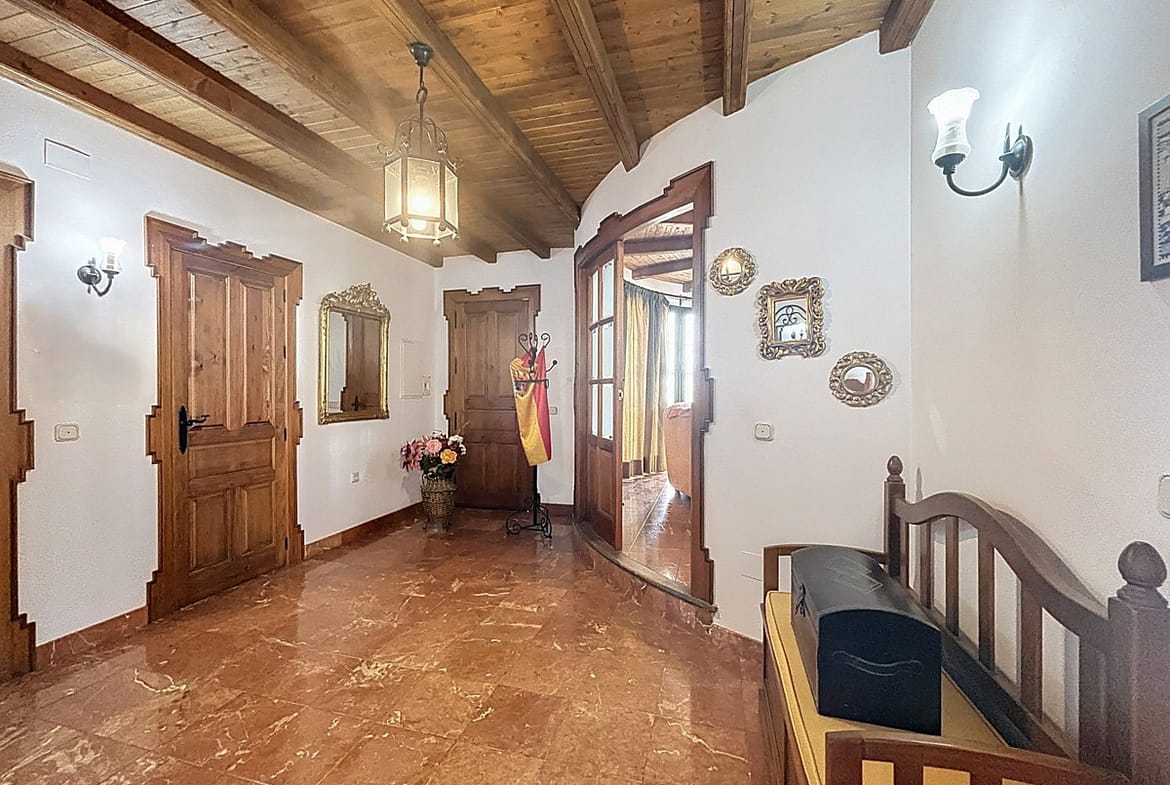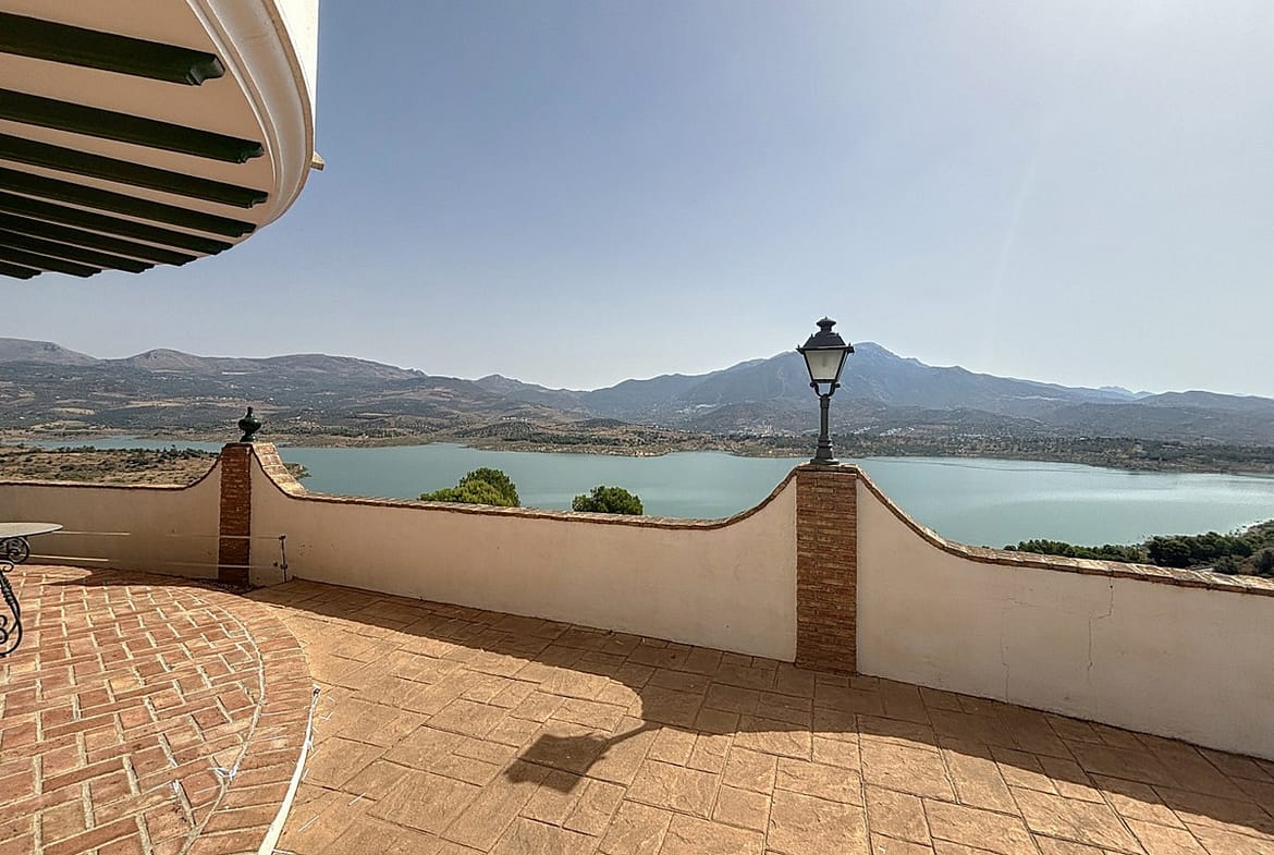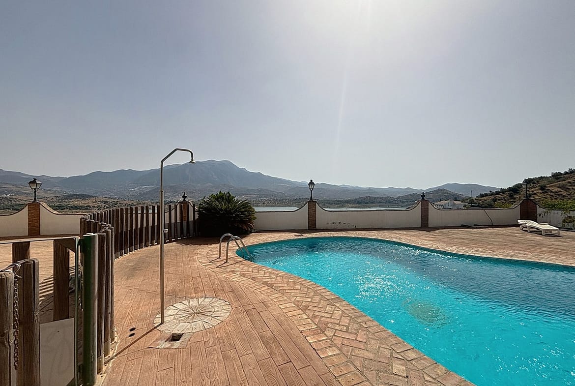 This charming villa in Los Romanes, Málaga, perfectly combines traditional Spanish architecture with modern comfort. The main house features 4 bedrooms, including a spacious master suite, 3 full bathrooms, a guest toilet, a laundry room, and a wine cellar in the basementideal for wine lovers. The living areas are characterized by wooden beam ceilings that add warmth and character. The main living room stands out with its striking sun-patterned wooden ceiling and a large wrought-iron chandelier. A fireplace and comfortable furnishings create a cozy atmosphere. Large windows and French doors flood the space with natural light and offer beautiful views of Lake Viñuela and the surrounding nature. The property also includes a separate guest apartment with 2 bedrooms, a bathroom, and a cozy open-plan living-dining area with a kitchenideal for visitors or additional accommodation. Outside, the villa boasts a large plot with a private pool, an outdoor kitchen with barbecue, a covered terrace, a pavilion, two garages, and two storage rooms with the potential to be converted into another apartment. Additionally, the property has its own well and a water cistern in one of the garages, ensuring a reliable water supply year-round. We are pleased to be able to present this dream property to you soon, either personally or via virtual viewing. Because this world is unique – just like our Axarquía. In Andalusia. On the Costa del Sol. Here, on the sunny side of life…