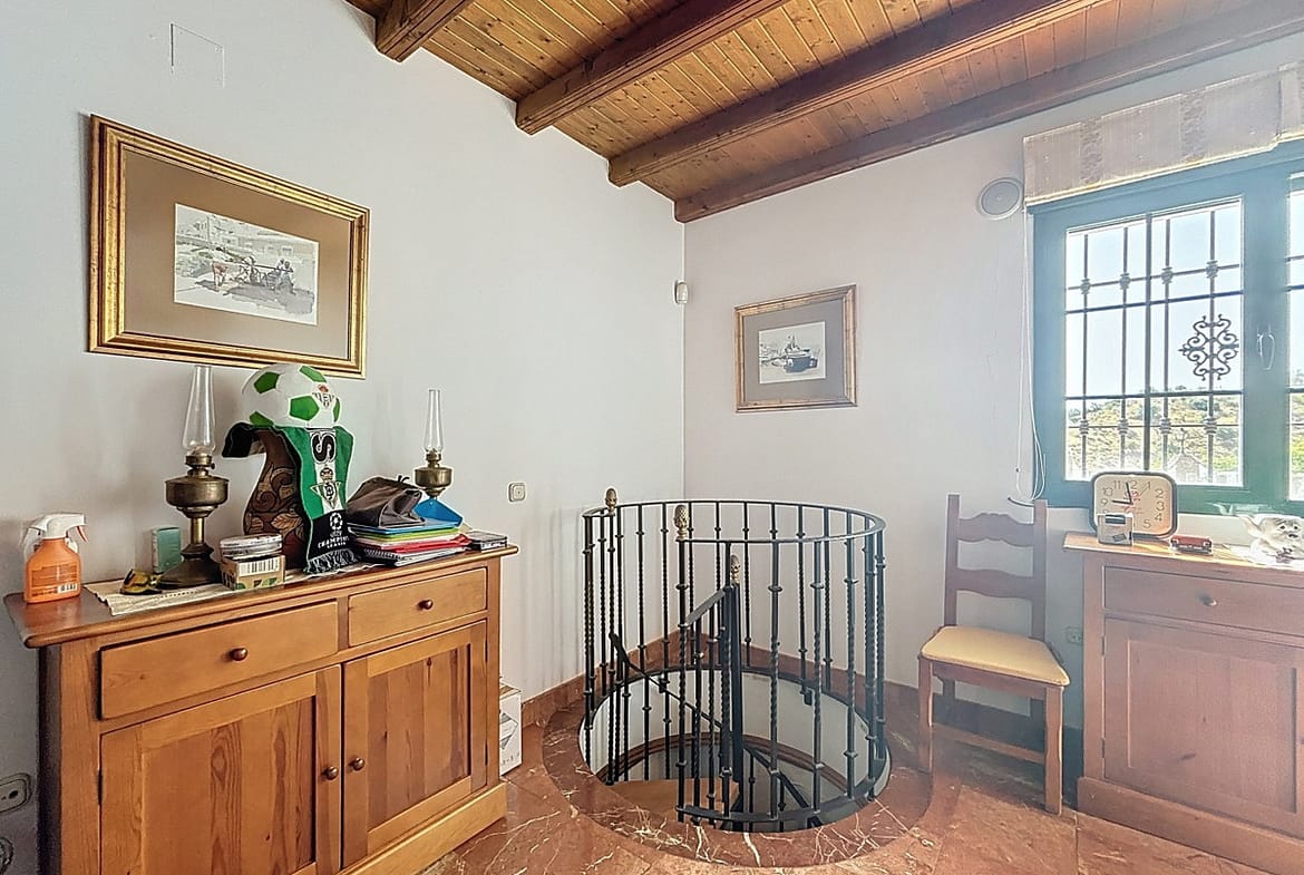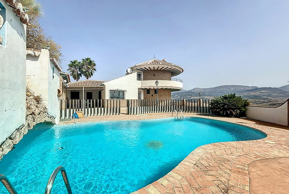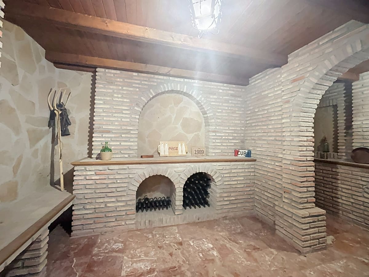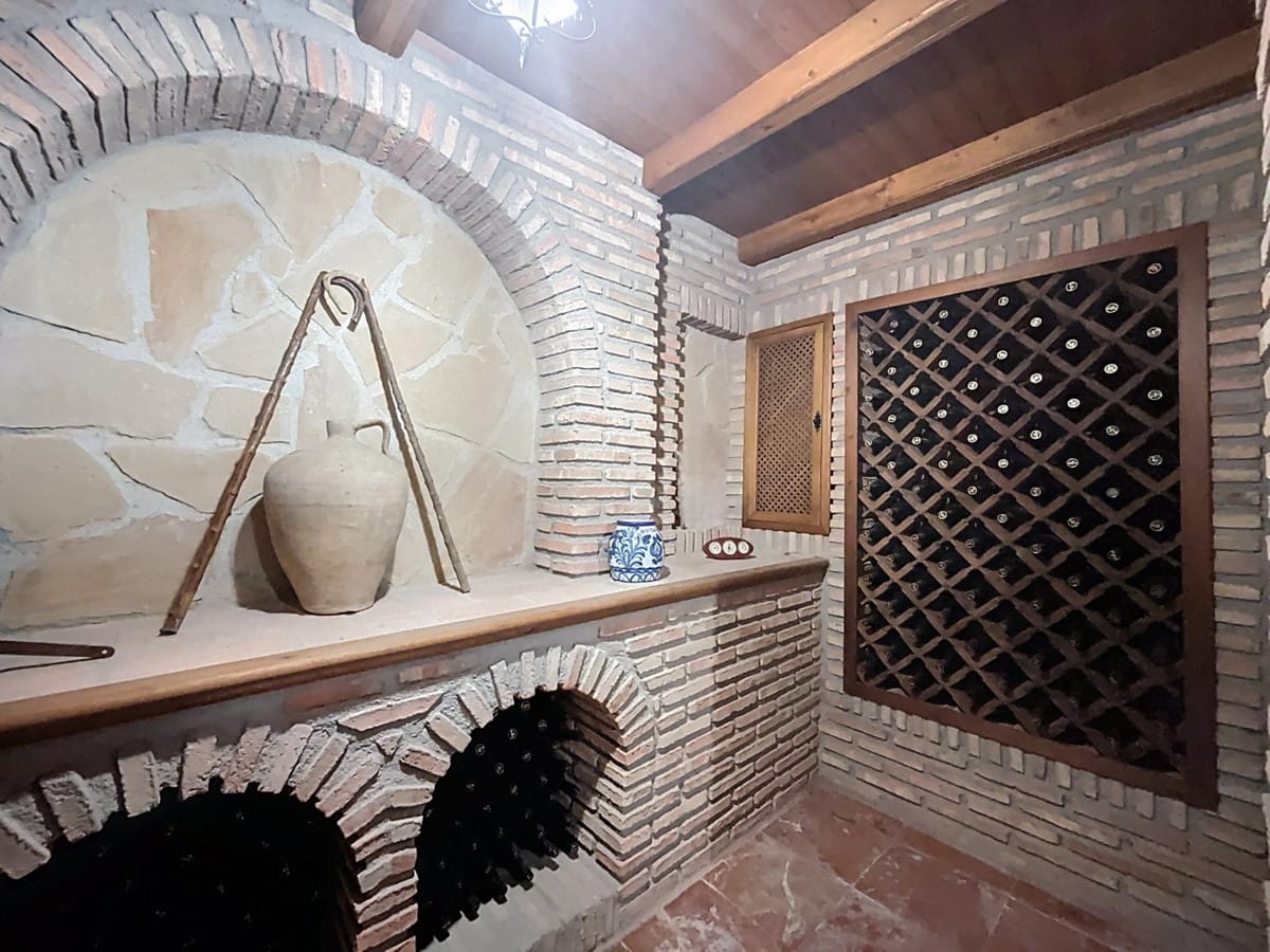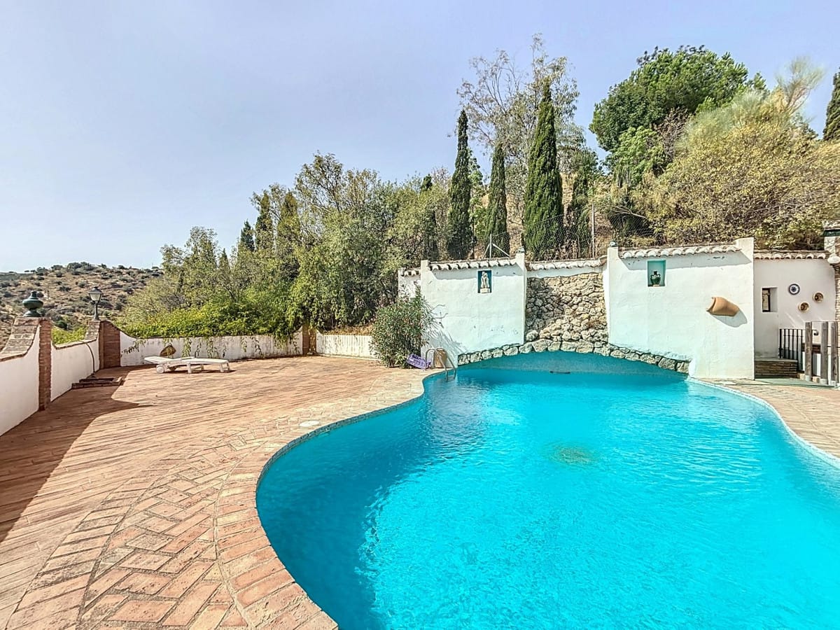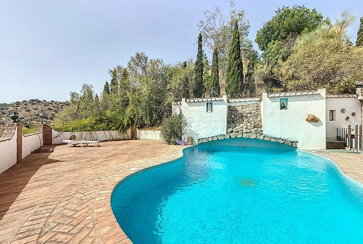 This charming villa in Los Romanes, Málaga, perfectly combines traditional Spanish architecture with modern comfort. The main house features 4 bedrooms, including a spacious master suite, 3 full bathrooms, a guest toilet, a laundry room, and a wine cellar in the basementideal for wine lovers. The living areas are characterized by wooden beam ceilings that add warmth and character. The main living room stands out with its striking sun-patterned wooden ceiling and a large wrought-iron chandelier. A fireplace and comfortable furnishings create a cozy atmosphere. Large windows and French doors flood the space with natural light and offer beautiful views of Lake Viñuela and the surrounding nature. The property also includes a separate guest apartment with 2 bedrooms, a bathroom, and a cozy open-plan living-dining area with a kitchenideal for visitors or additional accommodation. Outside, the villa boasts a large plot with a private pool, an outdoor kitchen with barbecue, a covered terrace, a pavilion, two garages, and two storage rooms with the potential to be converted into another apartment. Additionally, the property has its own well and a water cistern in one of the garages, ensuring a reliable water supply year-round. We are pleased to be able to present this dream property to you soon, either personally or via virtual viewing. Because this world is unique – just like our Axarquía. In Andalusia. On the Costa del Sol. Here, on the sunny side of life…