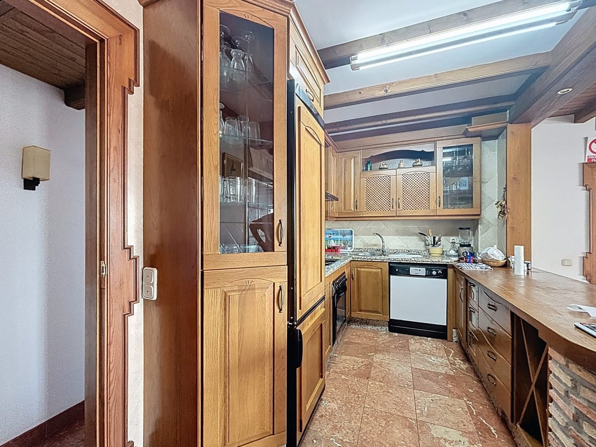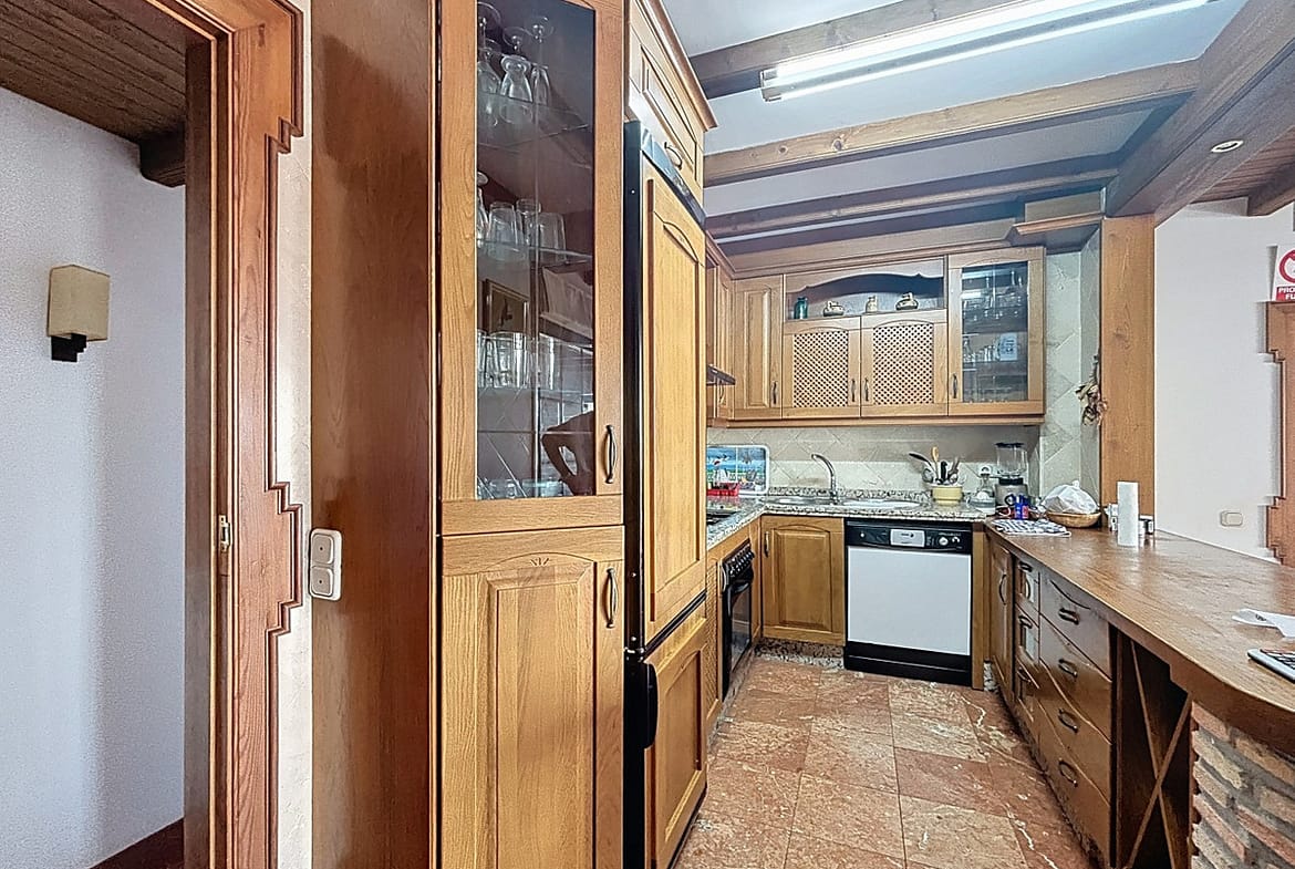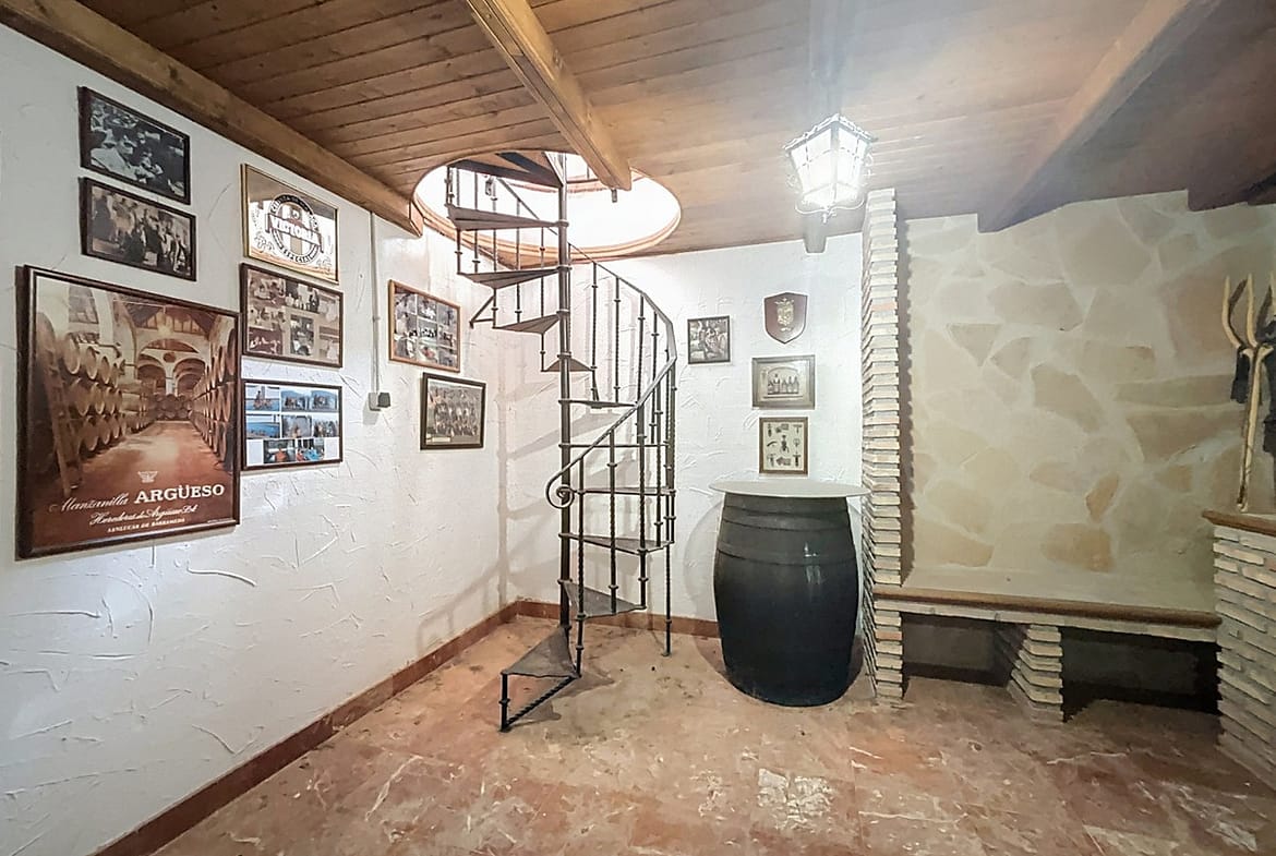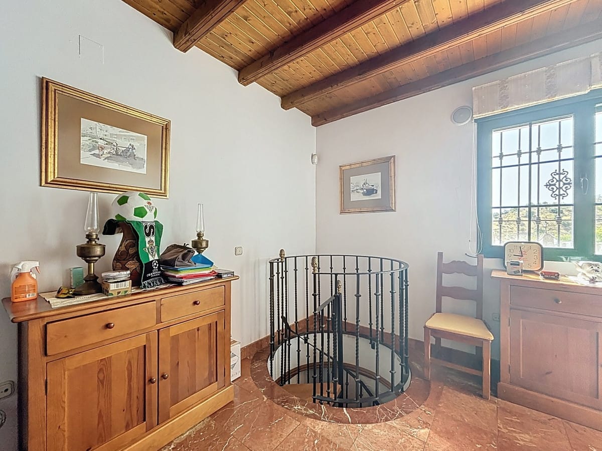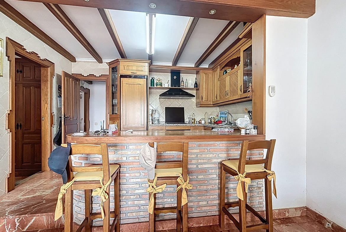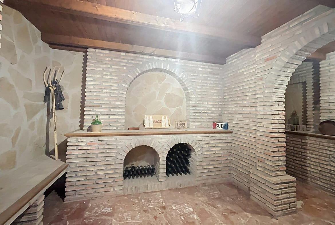 This charming villa in Los Romanes, Málaga, perfectly combines traditional Spanish architecture with modern comfort. The main house features 4 bedrooms, including a spacious master suite, 3 full bathrooms, a guest toilet, a laundry room, and a wine cellar in the basementideal for wine lovers. The living areas are characterized by wooden beam ceilings that add warmth and character. The main living room stands out with its striking sun-patterned wooden ceiling and a large wrought-iron chandelier. A fireplace and comfortable furnishings create a cozy atmosphere. Large windows and French doors flood the space with natural light and offer beautiful views of Lake Viñuela and the surrounding nature. The property also includes a separate guest apartment with 2 bedrooms, a bathroom, and a cozy open-plan living-dining area with a kitchenideal for visitors or additional accommodation. Outside, the villa boasts a large plot with a private pool, an outdoor kitchen with barbecue, a covered terrace, a pavilion, two garages, and two storage rooms with the potential to be converted into another apartment. Additionally, the property has its own well and a water cistern in one of the garages, ensuring a reliable water supply year-round. We are pleased to be able to present this dream property to you soon, either personally or via virtual viewing. Because this world is unique – just like our Axarquía. In Andalusia. On the Costa del Sol. Here, on the sunny side of life…