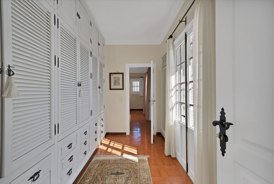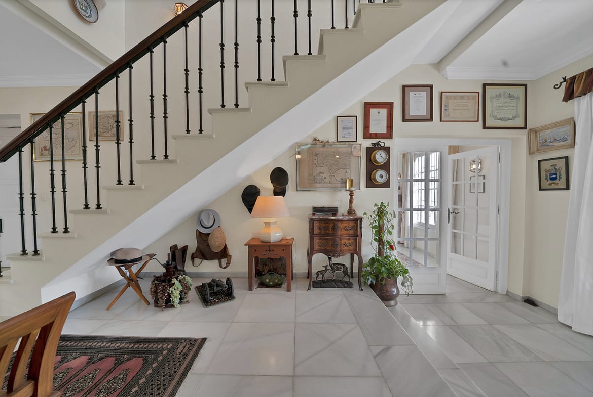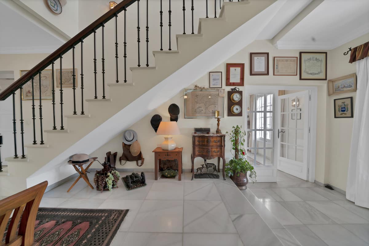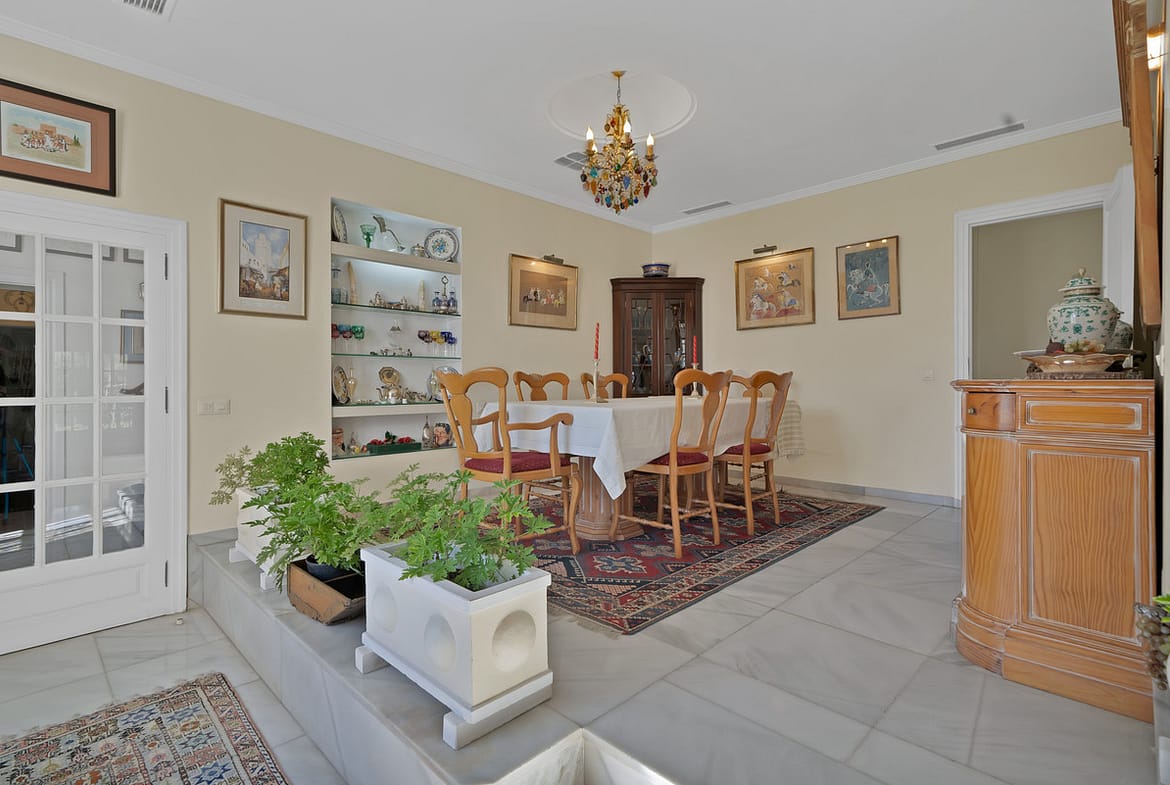 With a total built area of 700 m² (as per the Cadaster or land registry), the villa offers generous living spaces, ideal for family life. The ground floor features a spacious living room of over 40 m², a separate dining area, a large study, guest WC, and a fully equipped kitchen with a service area including a good-sized bedroom and bathroom. The inviting covered terrace opens directly onto the beautifully maintained mature garden and private pool – the perfect setting to enjoy Marbella’s enviable climate.