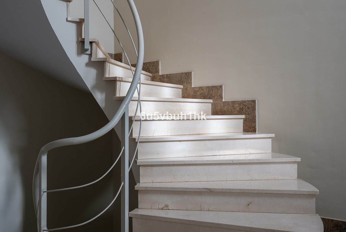 On the main floor, the home opens into a generous living and dining space with large windows and a direct connection to the terrace, garden and pool, the kind of layout that makes daily life easy, and entertaining effortless. A fireplace adds warmth in winter, and marble flooring brings a timeless, elegant feel throughout.