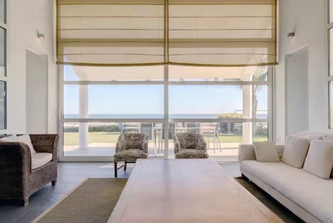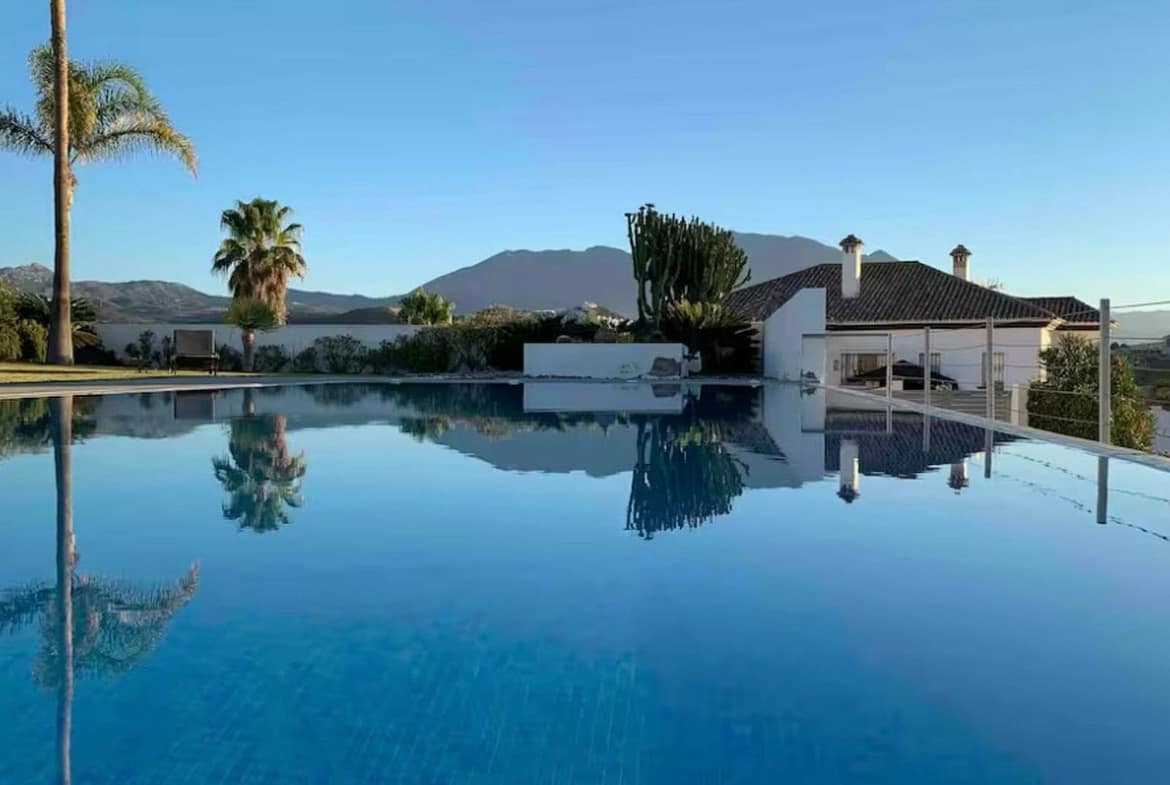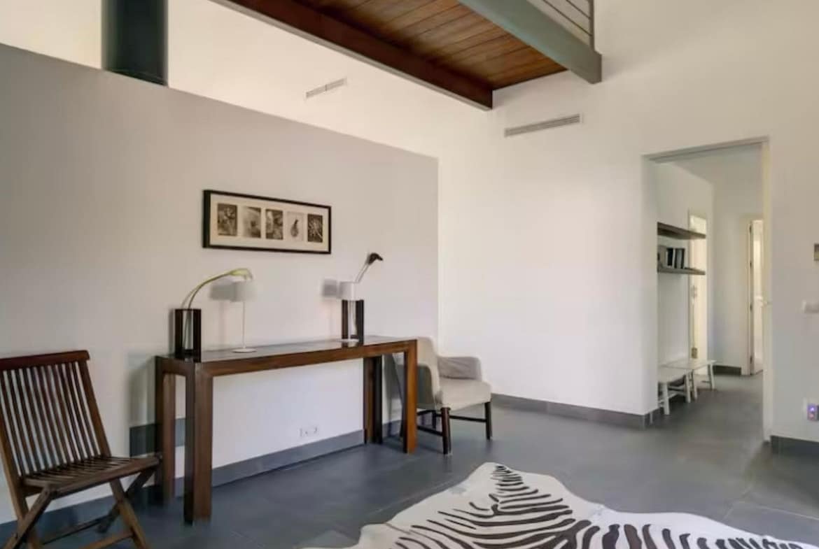 Modern luxury villa set within a vast private and peaceful estate offering breathtaking sea and mountain views featuring a stunning 16 x 6 meter private infinity pool surrounded by sun and shaded terraces ideal for relaxing sunbathing or dining al fresco with over 300 days of sunshine per year front and rear terraces to enjoy the sun all day long beautifully landscaped gardens with palm trees and flowers providing plenty of space to unwind or play fully enclosed property making it perfect for families with children the main villa includes 2 double bedrooms with ensuite bathrooms on the ground floor and 2 triple bedrooms with a shared bathroom upstairs a private self-contained apartment located just below the pool around 50 meters from the villa includes 2 double bedrooms one full bathroom a living room dining area kitchen air conditioning private terrace and game room with ping pong and darts total capacity for up to 16 guests 14 in beds plus 2 on a sofa bed in the apartment lounge for groups of up to 10 guests the apartment is used as a game room only with no bedroom access from 11 guests and up the full apartment is available including bedrooms complete privacy guaranteed as the apartment is never rented separately exclusive use of the entire estate pool gardens and all outdoor areas fully equipped with sunbeds hammocks parasols barbecue shaded terrace and outdoor toilet wifi Apple TV Netflix SONOS Play 5 sound system and private parking for up to 6 cars beach restaurants and bars just 2 kilometers away an ideal retreat for families or groups seeking luxury comfort and total privacy in a stunning Mediterranean setting