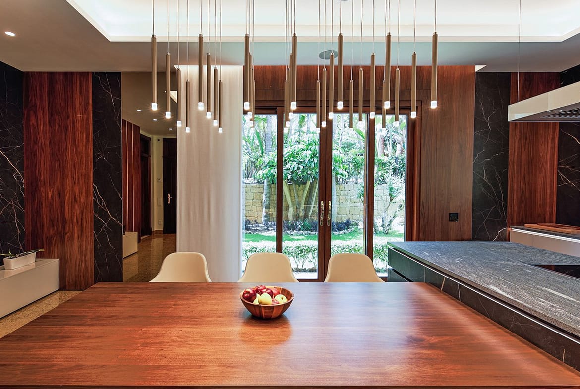The villa is adorned with exquisite Vistosi chandeliers, a renowned Italian brand that embodies the excellence of Murano glass artistry and contemporary design.