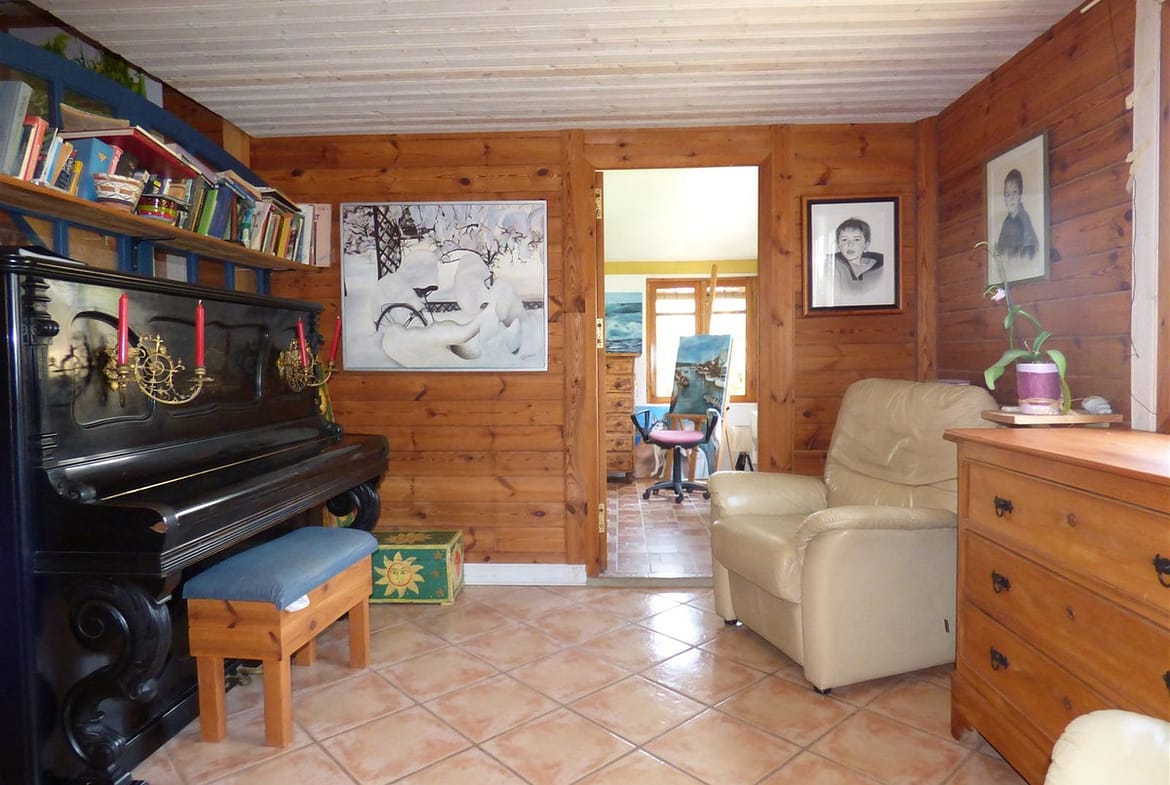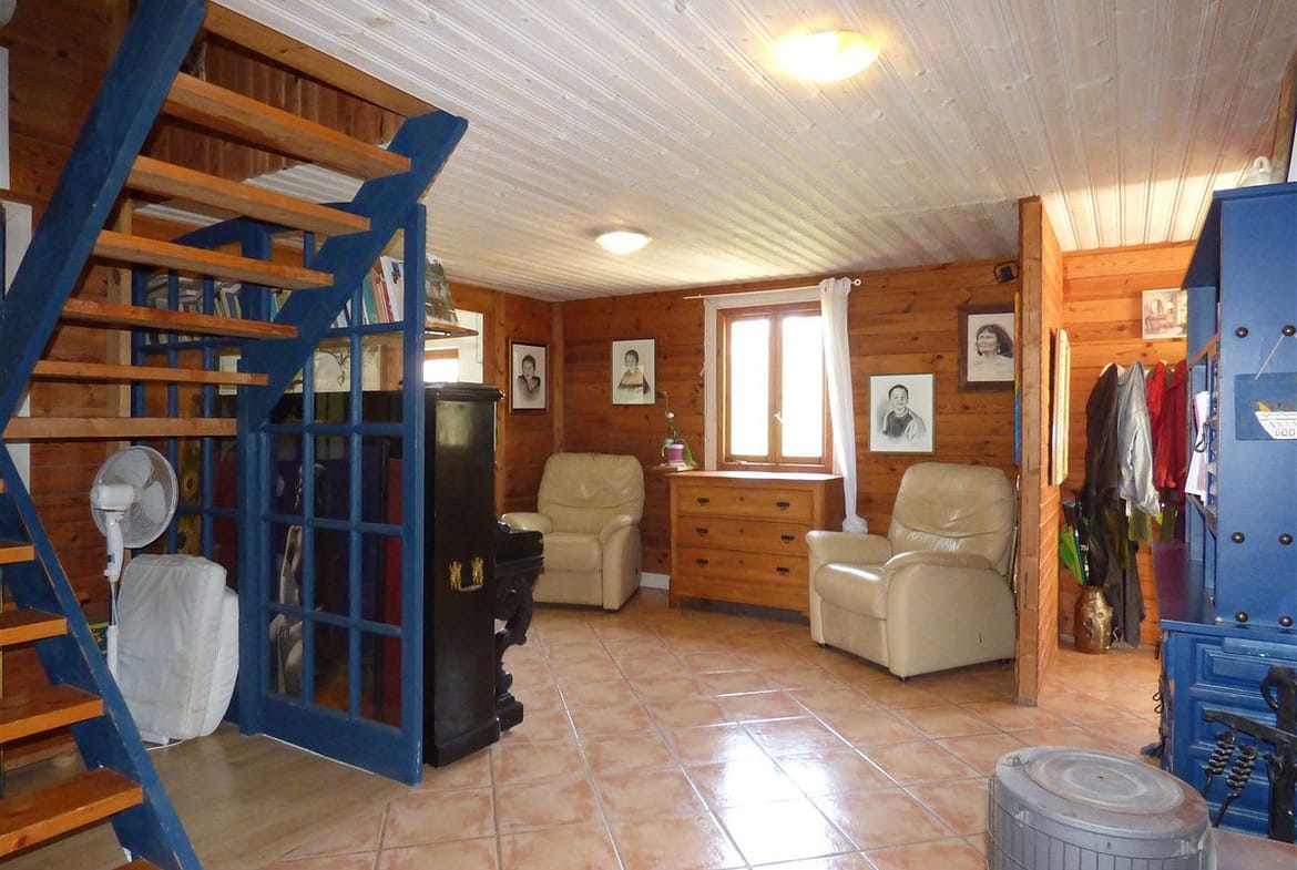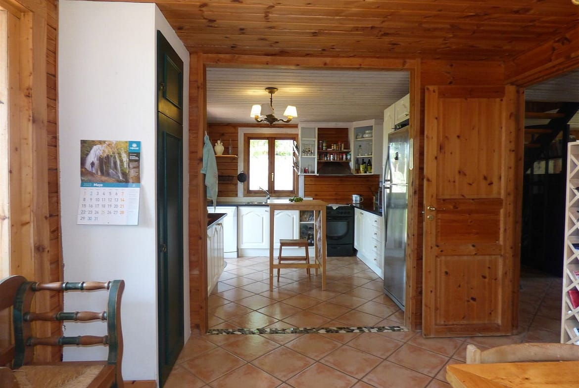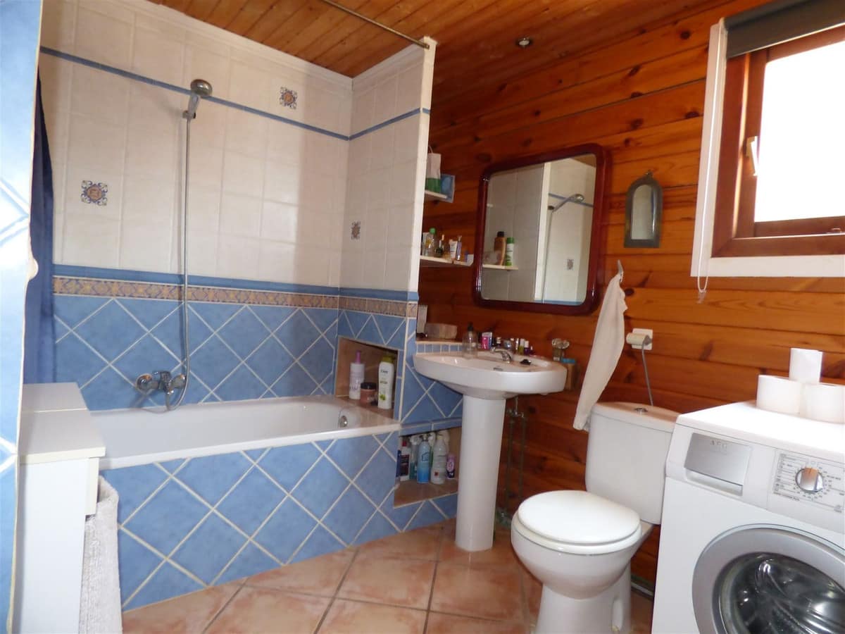 The basement has its own apartment with its own access as it is rented out sometimes. It has 2 bedrooms, fitted kitchen, bathroom, living area with a chimney and access to a nice covered porch. From there you can walk down to view the plot on path ways as the plot is large and terraced.