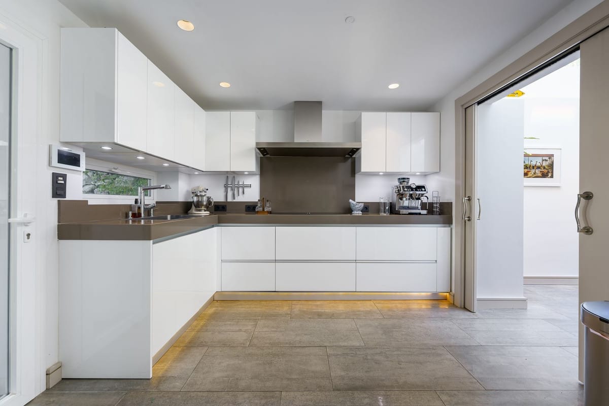 Originally constructed in the 1970s, the villa has been completely reimagined and expanded to include a second floor, a sprawling solarium, and a charming guest house. The main house boasts a contemporary open-plan layout on the ground floor, featuring a spacious living and dining area alongside a premium, fully equipped kitchen. This level also includes three en-suite bedrooms and a guest toilet.