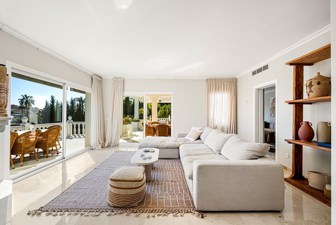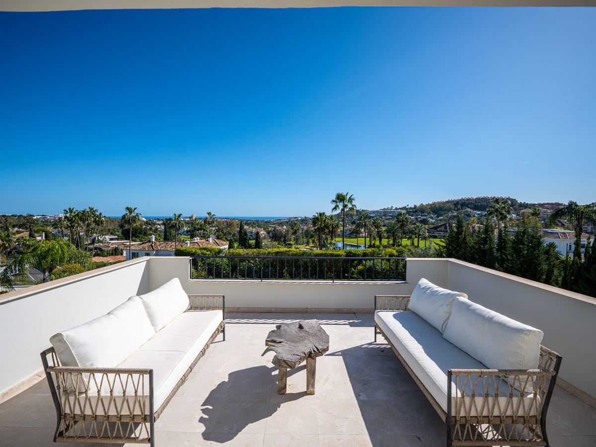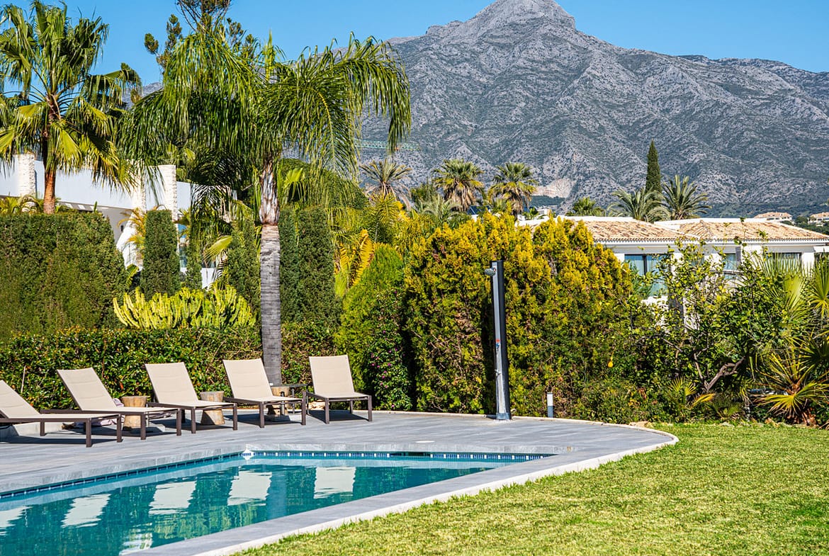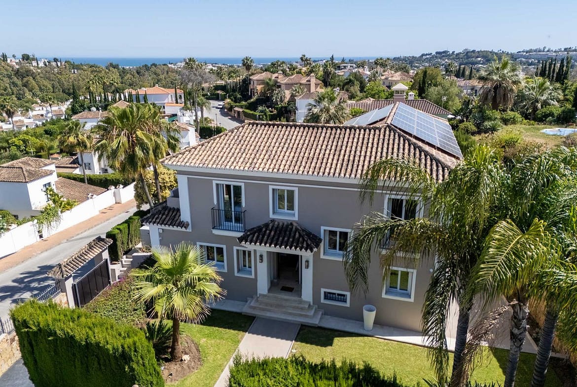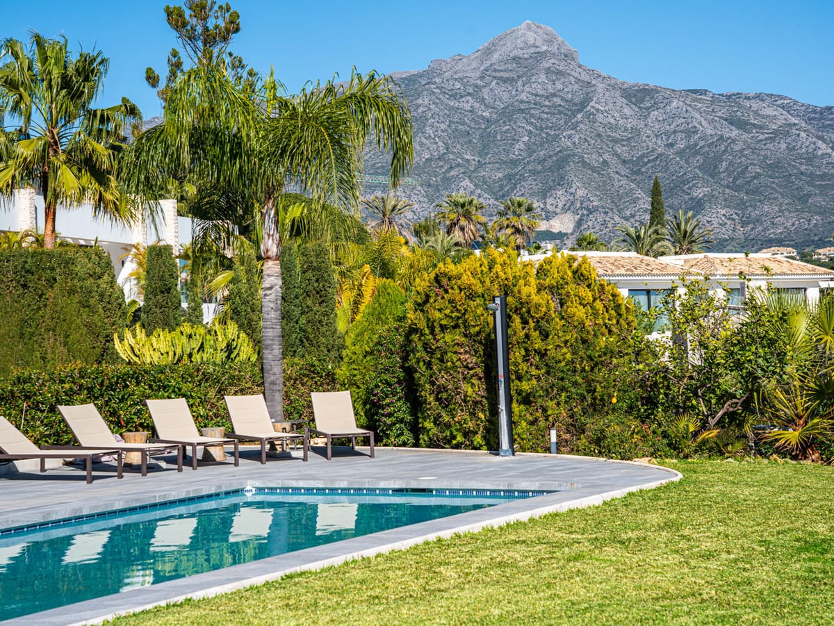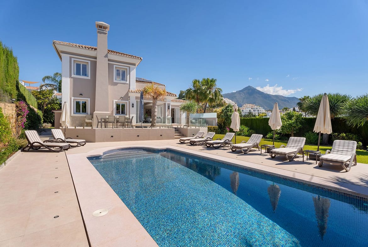This impressive luxury villa, exclusively available through our sole agency, is situated in the desirable neighbourhood of Nueva Andalucia. Boasting a substantial built area of 510m² on the best Plot with a generous 1,200m² very high privacy factor , the property offers six spacious bedrooms, five bathrooms (four en-suite), and an additional guest toilet, designed to accommodate the highest standards of modern HIGH Quality family living.