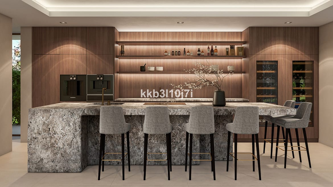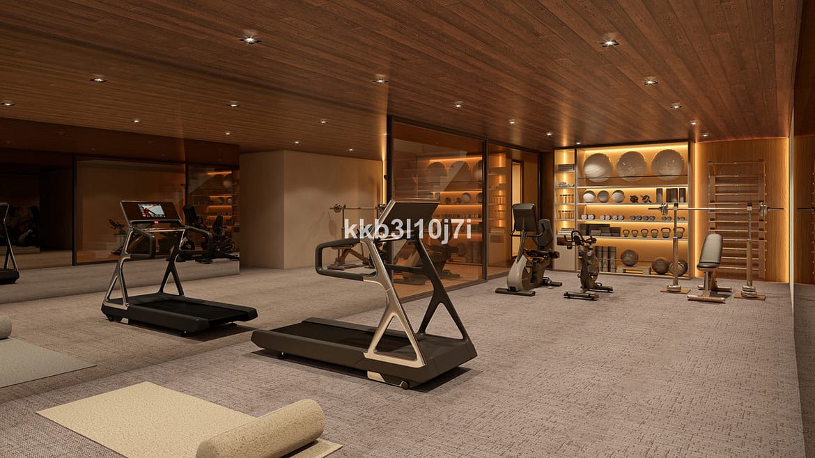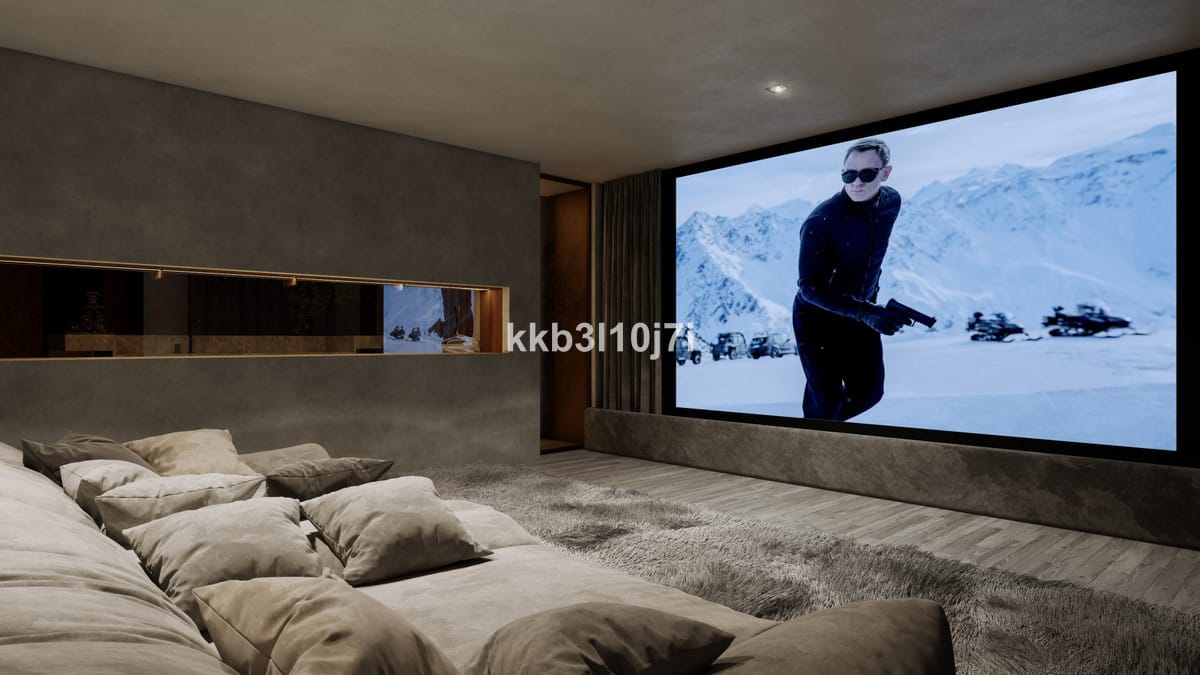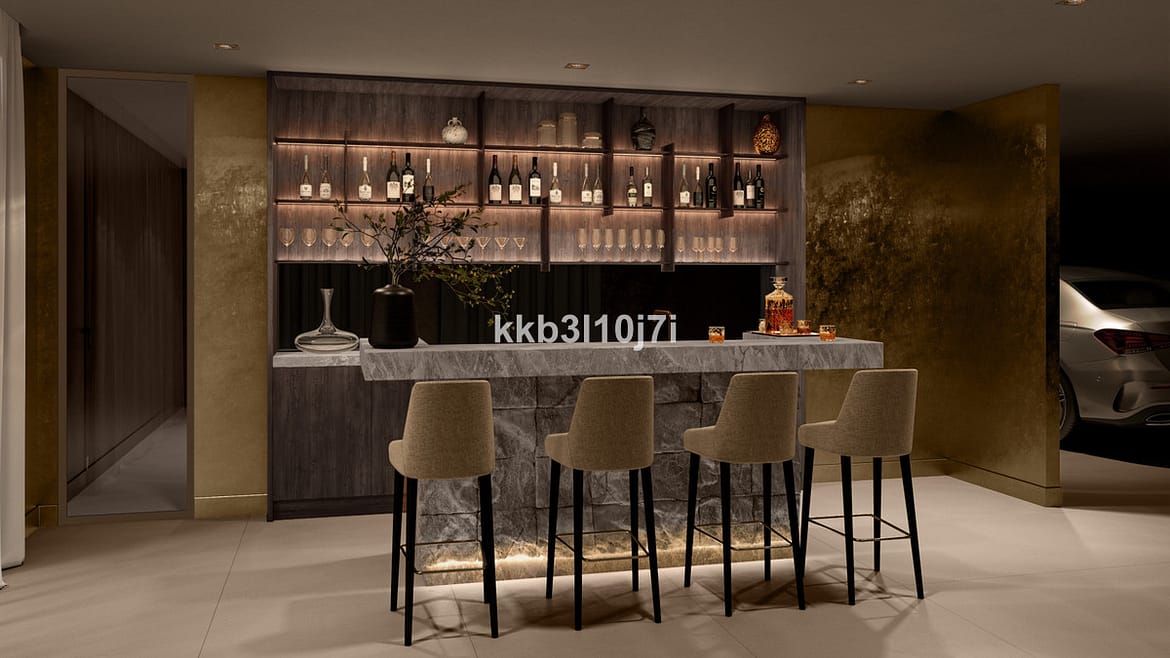 The lower level of the villa is designed to deliver a complete luxury lifestyle experience. In addition to two further en-suite bedrooms for guests or staff, this level features a private cinema room, a wine cellar, a games room, a fully equipped gym, and a dedicated laundry area. A bespoke wellness area elevates the offering even further, including a sauna, hammam, and ice bath, creating a private spa environment within the home. The property also benefits from an expansive five-car garage, providing ample space for vehicles and additional storage, complemented by an exterior carport. For added convenience and comfort, the property is equipped with a private lift, ensuring easy access between all levels of the residence.