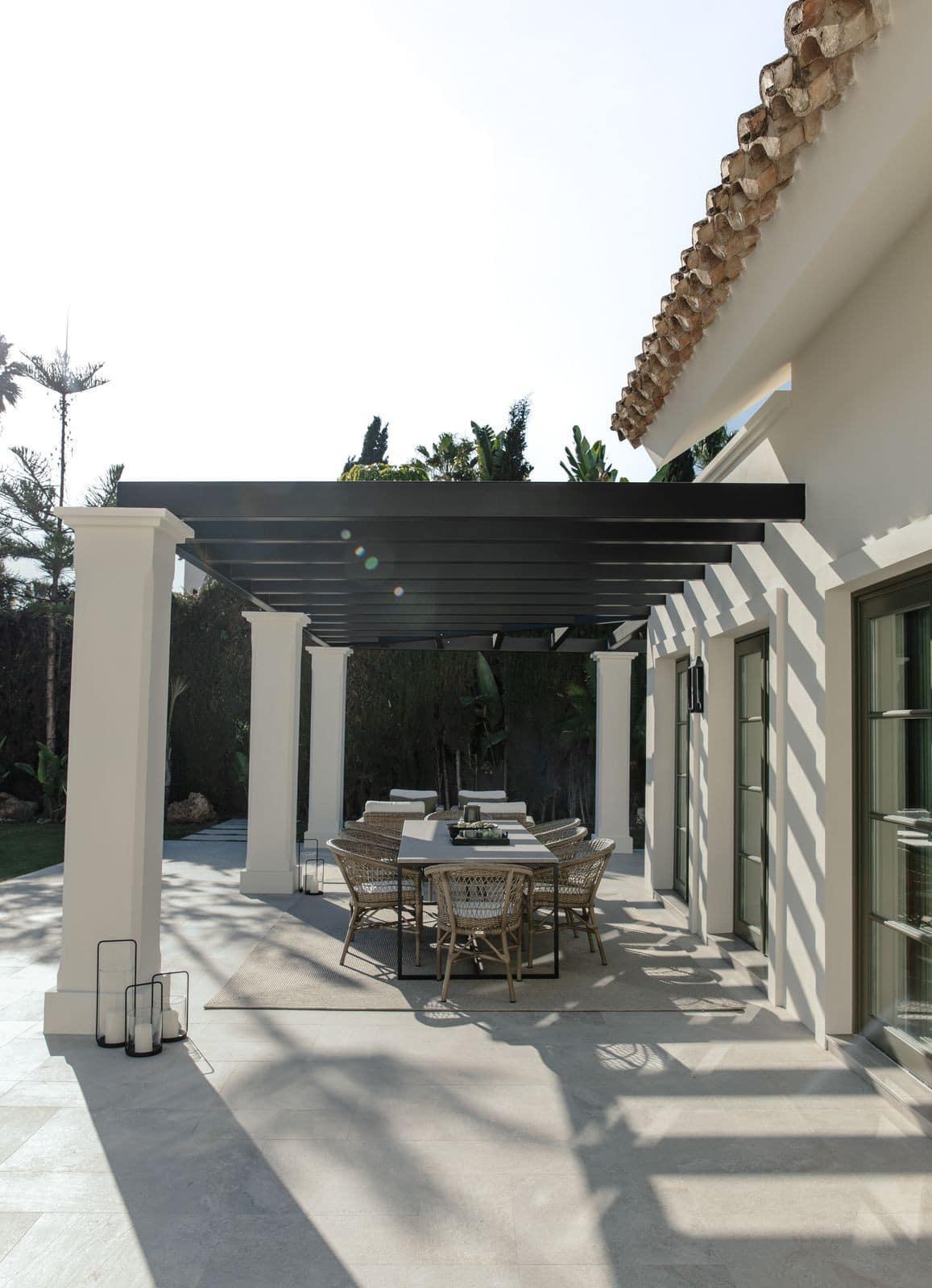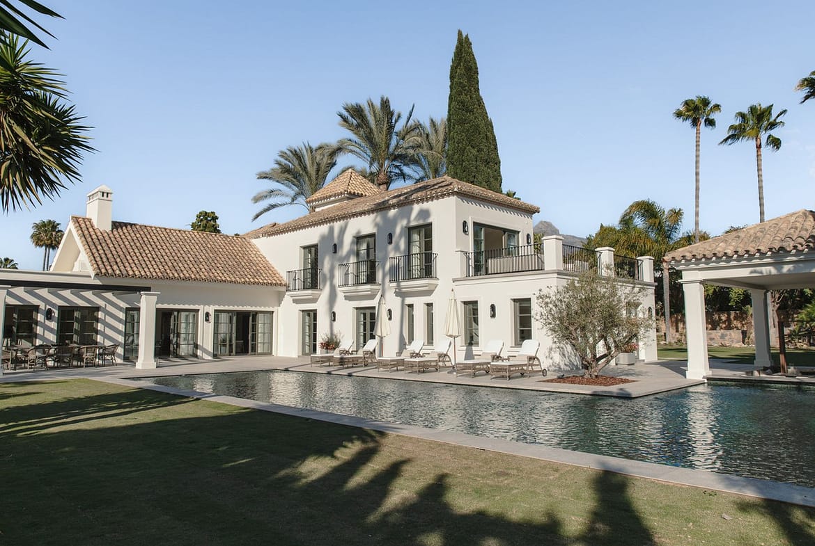 Recently built, the villa showcases outstanding craftsmanship and embraces a timeless French provincial aesthetic with elegant architectural features. Covered porches provide shaded lounge areas ideal for relaxing under the Mediterranean sun, while expansive terraces invite alfresco dining and laid-back social gatherings. A sunken chill-out area with a custom-designed bar beside the private pool creates the perfect setting for unforgettable summer evenings.