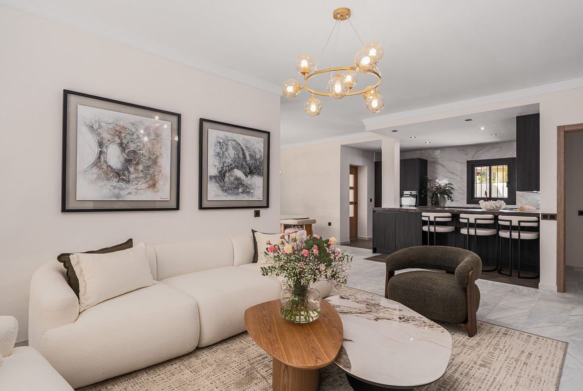 Casa Los Momentos is a refined and spacious 6-bedroom villa for sale located in the highly desirable Altos del Rodeo residential enclave, within Nueva Andalucia, just minutes from Puerto Banús and Marbella’s top amenities. Spread across three levels with 315 square meters of built space, this property presents a rare opportunity to enjoy the perfect blend of classic Mediterranean architecture and modern lifestyle comfort on the Costa del Sol.