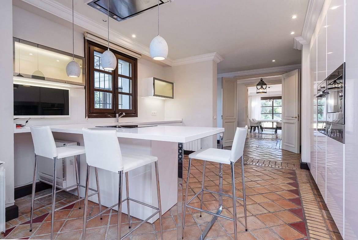Outside, the 2,200 m² plot includes a mature garden and a private swimming pool — a comfortable setting to enjoy Marbella’s climate all year round, whether entertaining or relaxing.