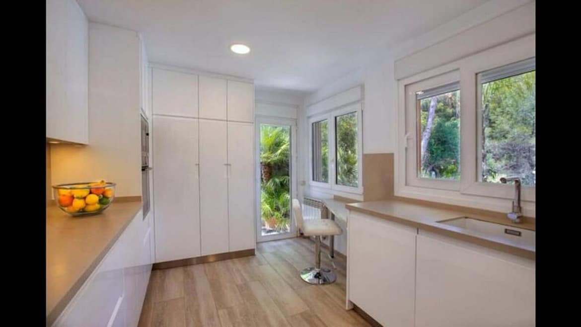 This beautiful and newly refurbished villa offers everything you need. A spacious home with six bedrooms, three of them in the upper level with their bathrooms “en-suite” which all come with a bathtub. All bedrooms are well-equipped with double beds and built-in wardrobes.