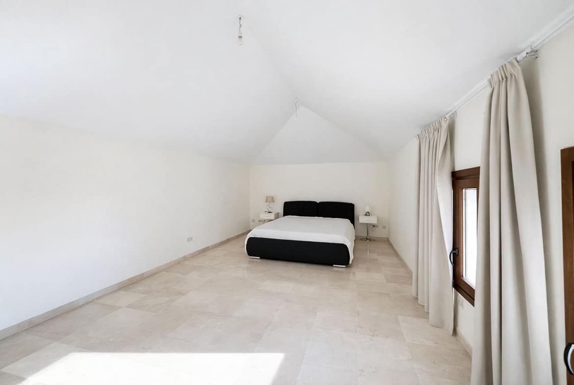 On the first floor there is another bedroom with a window, and on the other side of the hallway is the master suite with its private south-facing terrace, with sea views.