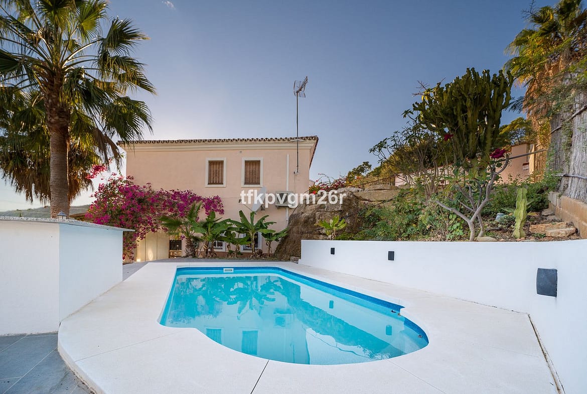 Forest Hills, Estepona. Fabulous 6 bed 6 bath family home with sea views and 1 bed 1 bath guest annex. There is a swimming pool 6 x 3 m2 and garden of approx 50 m2 plus large terrace leading from indoor living area of main house. In addition, there is a drive with parking for 2 cars. Built area 300 m2. Plot size 1,000 m2. This is an ideal property for a family of 3 or more children. Due to its size, it is also an interesting investment opportunity for the holiday lets market.