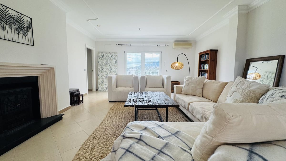 This impressive villa in La Cala Golf offers truly panoramic sea and mountain views. The main house is all on one level, and offers: a double car port, 4 en suite bedrooms, a guest cloakroom, a huge kitchen with central island, a separate utility, and two separate living rooms, both of which lead to the very large pool and terrace area. The lower level of the house is an independent 3 bedroom 2 bathroom apartment with living room and kitchen, large terrace, and access to a second pool and terrace area, plus a second driveway entrance and double garage. An investor's dream, the house has an LPO and is ready to love in or rent out straight away. You could live one part and rent out the other, rent it out as two separate properties, or as a 7 bedroom house, the choice is yours… Offers are invited for this Wow-factor house!