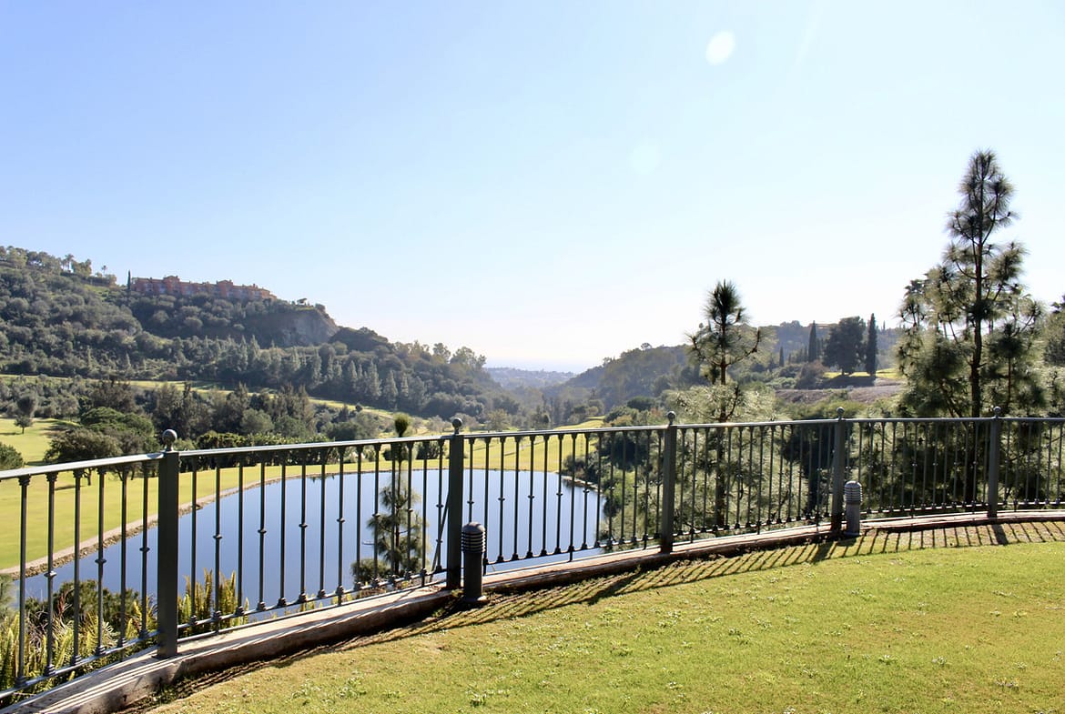 The best property in Los Arqueros for sale. Fully equipped luxury frontline golf villa located in Los Arqueros with big plot looking directly to the best area of the Community, looking directly to the golf course, the big Lake and the Mountain of La Concha de Marbella, and also the sea.