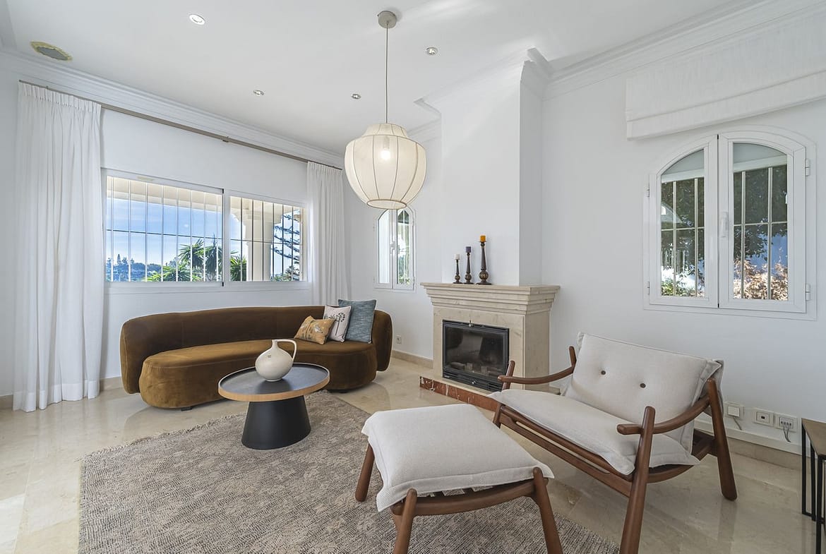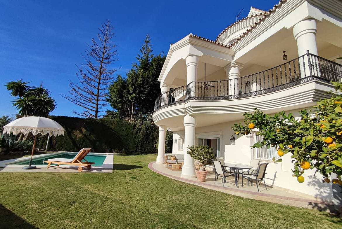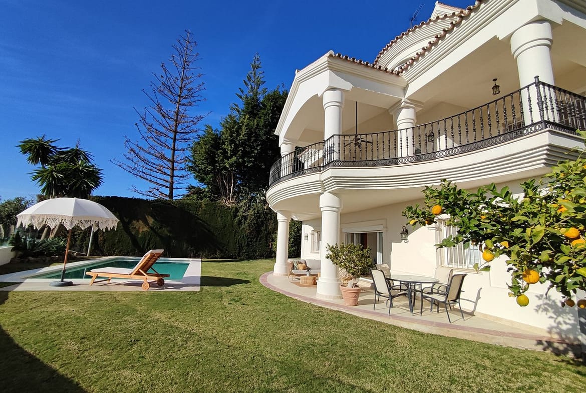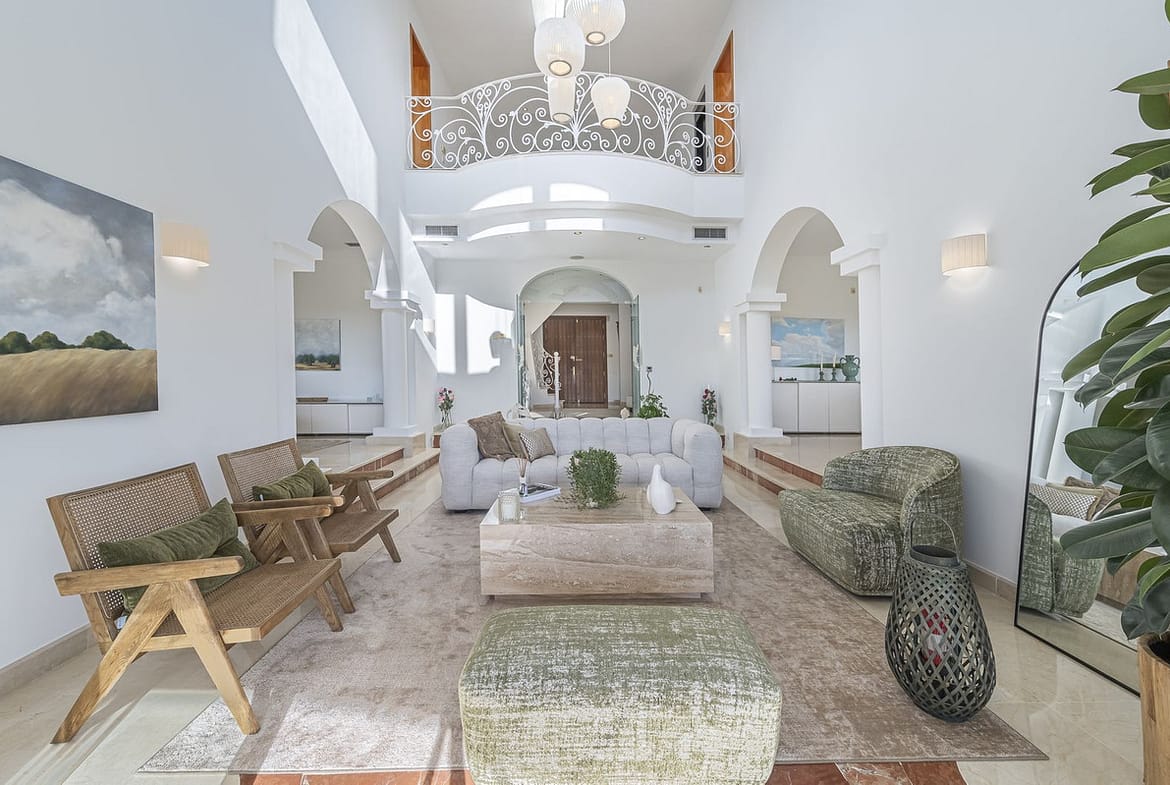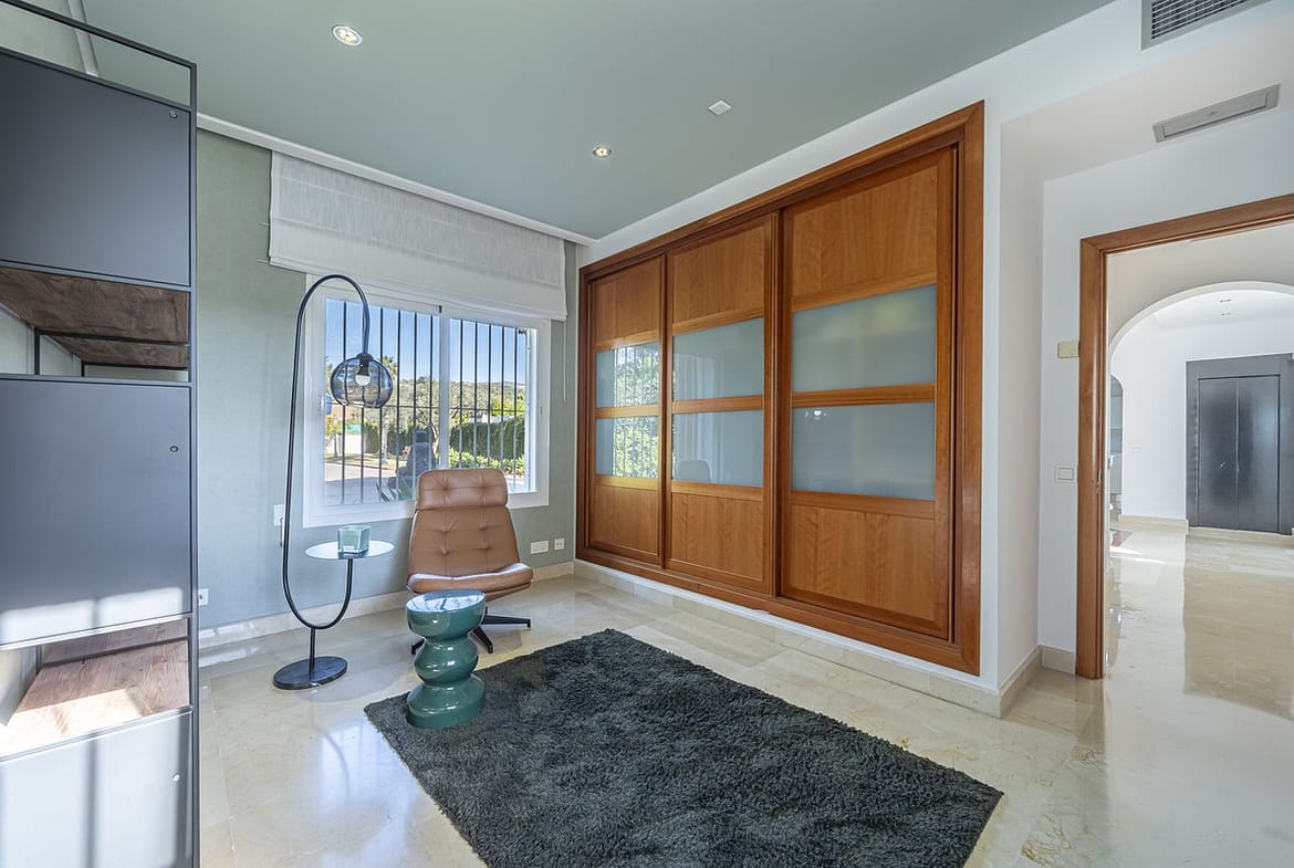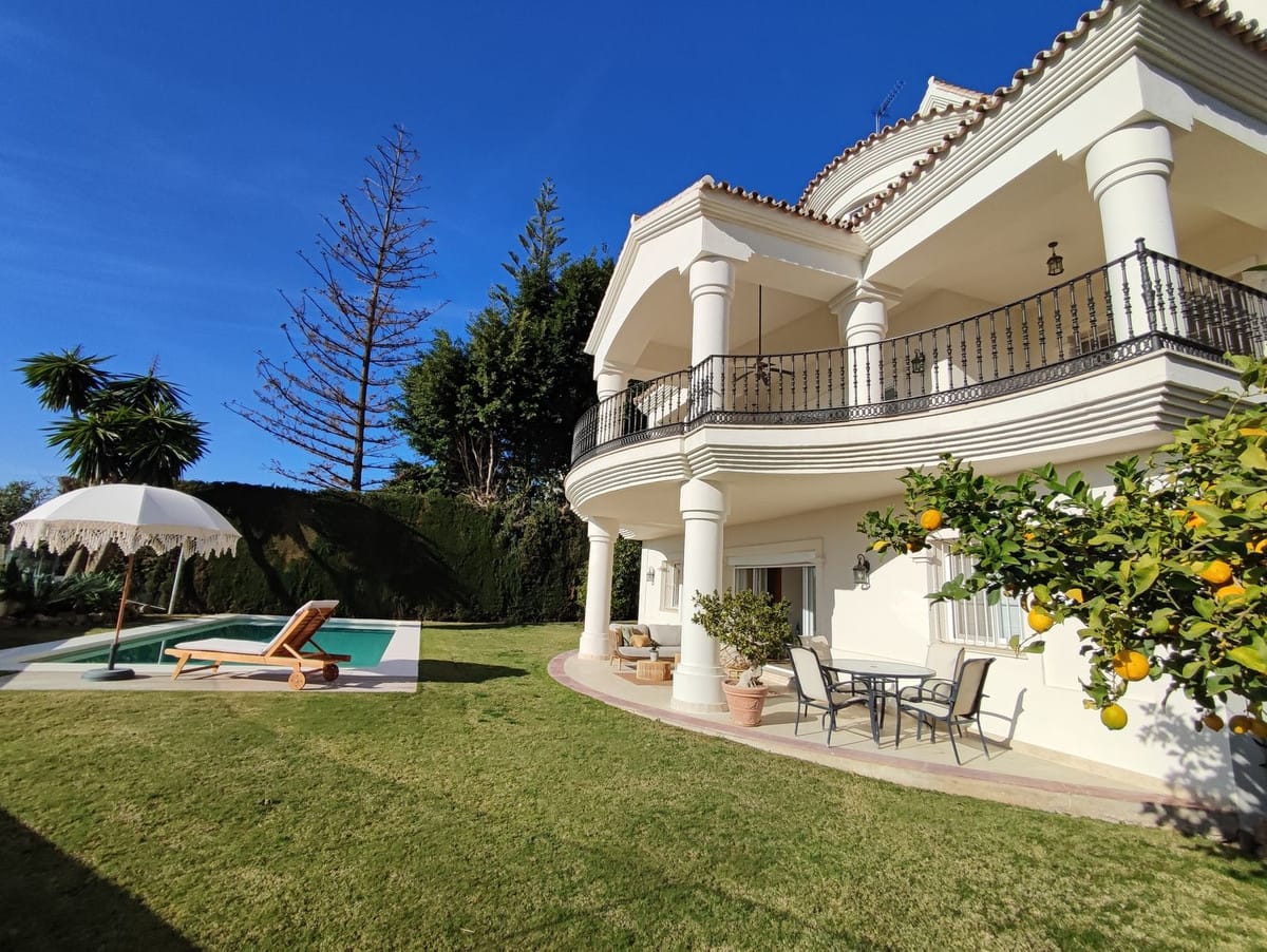 This magnificent villa located in the heart of the prestigious Golf Valley of Nueva Andalucia! This impressive property boasts of an expansive 1.425m2 of plot size and located first line golf. Entering the property, a huge driveway welcomes you to the well-maintained expansive garden area. This recently reformed villa has is divided into 4 floors plus attic, 7 bedrooms, 7 bathrooms, gust toilet, several living rooms and lounge areas, terraces and entertainment area. Upon entering this stunning villa, you will be greeted by a bright hallway with a high ceiling and access to the different areas of the main floor. To the right is a bedroom with ensuite bathroom which could also be an private office.On the left part, you will find a charming independent kitchen fully equipped with high quality appliances. Also, on the main floor you will find the dining area, a separate lounge area and a very chic sitting area with direct access to the terrace. Enjoy the best golf views on the large terrace with different spaces to have your meals or just relax and enjoy the sun and the fantastic views. Going up on the second floor, you will find two grand master bedrooms both with ensuite bathrooms (with bath and shower), both with access to the bright terrace. On the upper floor, you will find a spacious studio which could be used as an office, art studio, another bedroom etc. Going down to the lower floor, you will find, a spacious entertainment room with a cinema, bar, game area; 3 complete bedrooms and 3 bathrooms, a spacious living area-dining room and an open kitchen. We go out to the sunny porch area that leads out to the lush gardens with a beautiful swimming pool. On the lower floor, you will find a very spacious garage for 5-6 cars and a fully equipped gym area. This modern house is equipped with a lift in all floors, individual air-condition hot and cold, fireplace, underfloor heating, alarm system, electric blinds. This classic-style home is built with the best quality materials and modernized elegantly creating a luxurious home in one of the most exclusive areas of Marbella! Surrounded by the best golf courses such as Los Naranjos Golf, Magna Marbella, Las Brisas. Just a few minutes’ drive to the beach and Puerto Banus!