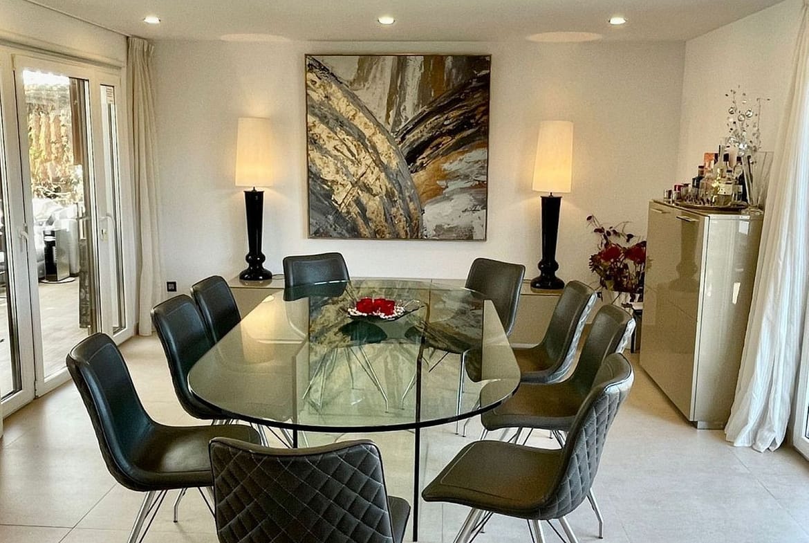 The outdoor areas are one of the property’s standout features. A private, south-facing swimming pool, jacuzzi, and a terrace shaded by a bioclimatic pergola create an inviting atmosphere for relaxation and entertaining. The rooftop solarium offers panoramic views and all-day sun exposure, while the private garden adds a sense of peace and seclusion.