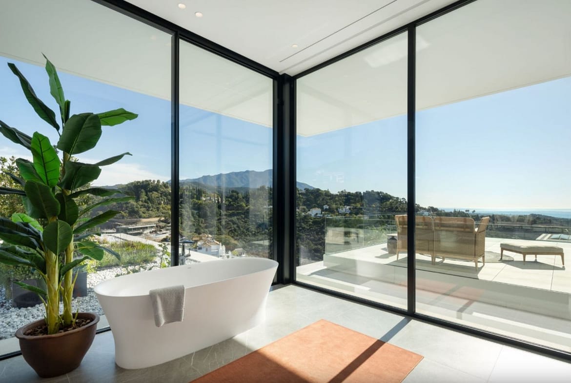 Discover this exceptional contemporary villa for sale in the prestigious gated community of El Madroñal, nestled in the tranquil hills of Marbella. This remarkable property seamlessly blends modern architectural design with natural beauty, offering breathtaking panoramic views of the Mediterranean Sea and surrounding mountains. Every detail has been thoughtfully curated to deliver a luxurious and harmonious lifestyle.