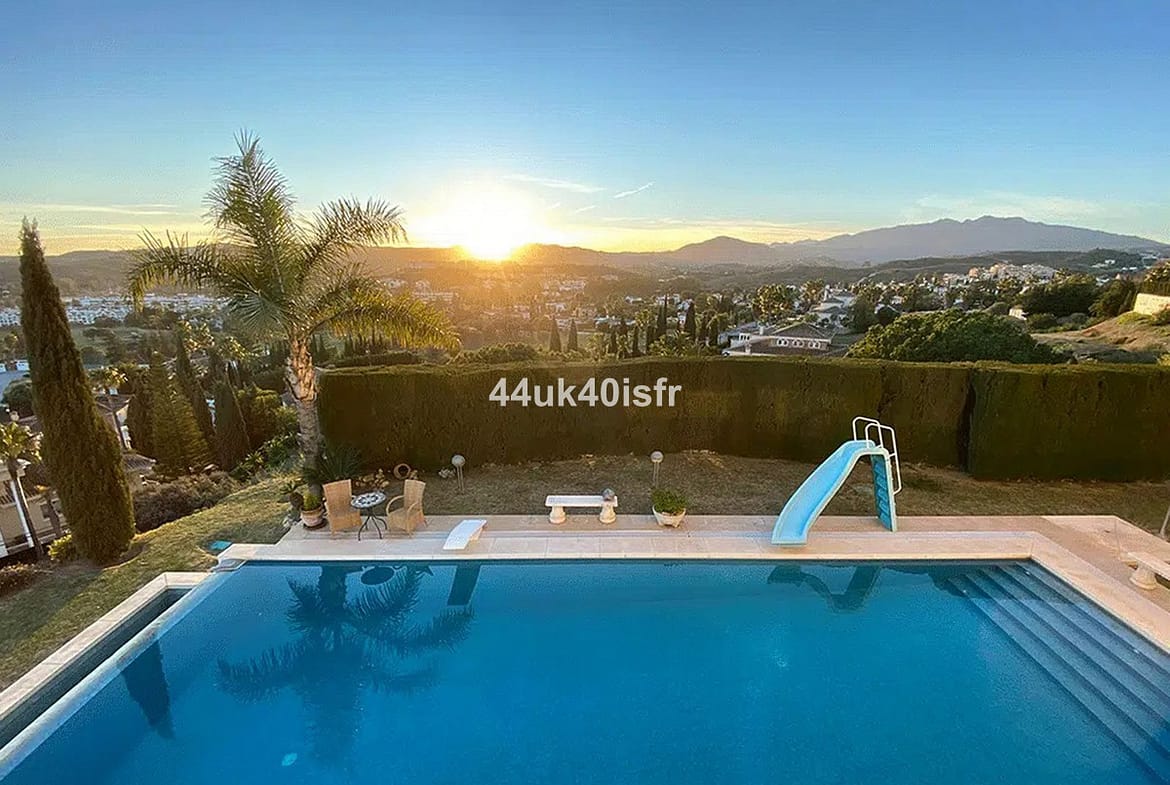 This unique Mediterranean-style mansion offers an unparalleled blend of luxury, comfort, and breathtaking scenery. Featuring 8 bedrooms and 8 bathrooms, the property provides approximately 1,000 m² of refined living and entertaining space. The home comprises over 750 m² of internal build, a 45 m² carport, and 200 m² of mostly covered terraces—all set on a 1,700 m² elevated plot with meticulously landscaped gardens, a 75 m² infinity pool, and covered parking for two cars, plus additional space for 2–3 vehicles.