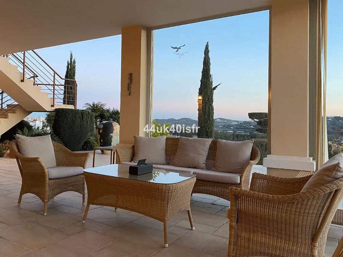 The heart of the home is a 162 m² open-plan living space combining kitchen, dining, and lounge areas centered around a wood-burning fireplace. Large sliding doors open onto an expansive terrace with multiple areas for relaxing, dining, and entertaining, all set against the spectacular backdrop of Mijas Golf.