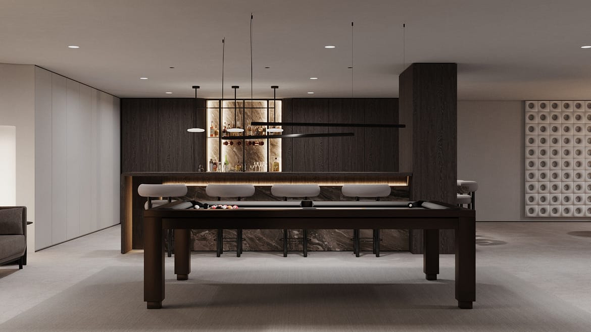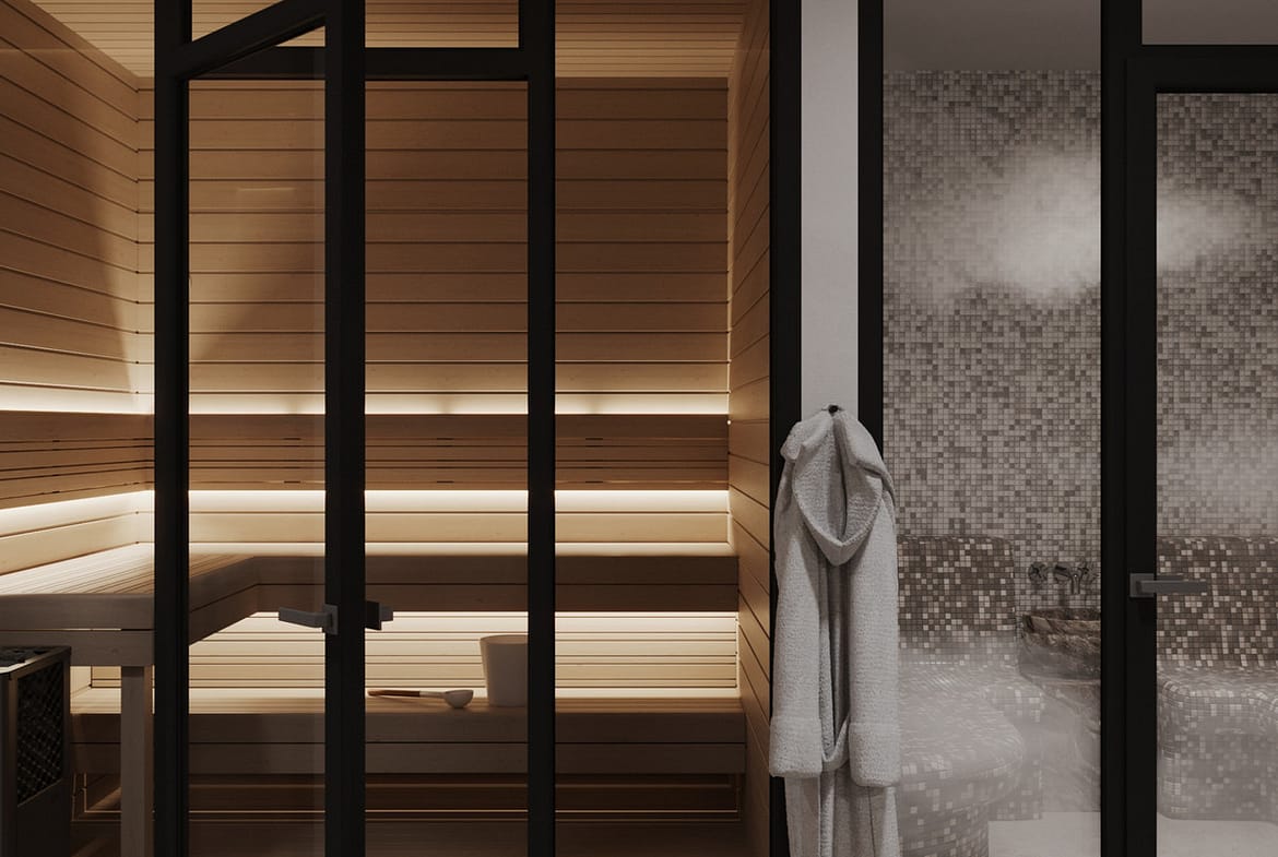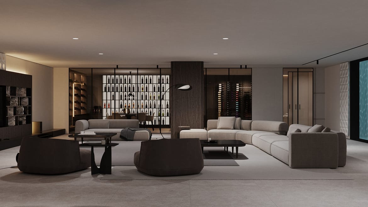 The basement is a highlight of the villa, designed for both leisure and practicality. It includes four en-suite bedrooms—ideal for guests or friends—alongside a game room and bar, perfect for entertaining or family game nights. A home cinema is perfect for movie nights, while a gym caters to fitness enthusiasts. For total relaxation, the spa area includes a massage room, sauna, and Turkish bath. A wine cellar, laundry room, and storage space complete this level.